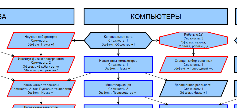 >>703160 Кароч косой шестиугольник это здание. Шестиугольник - проект. Восьмиугольник - боевая единица. Трапеция - слот для армий (наземное) Перевернутая трапеция - слот для кораблей (неназемное) Прямоугольники - технологии, которые можно и наукой изучать, один раз и навсегда и везде.