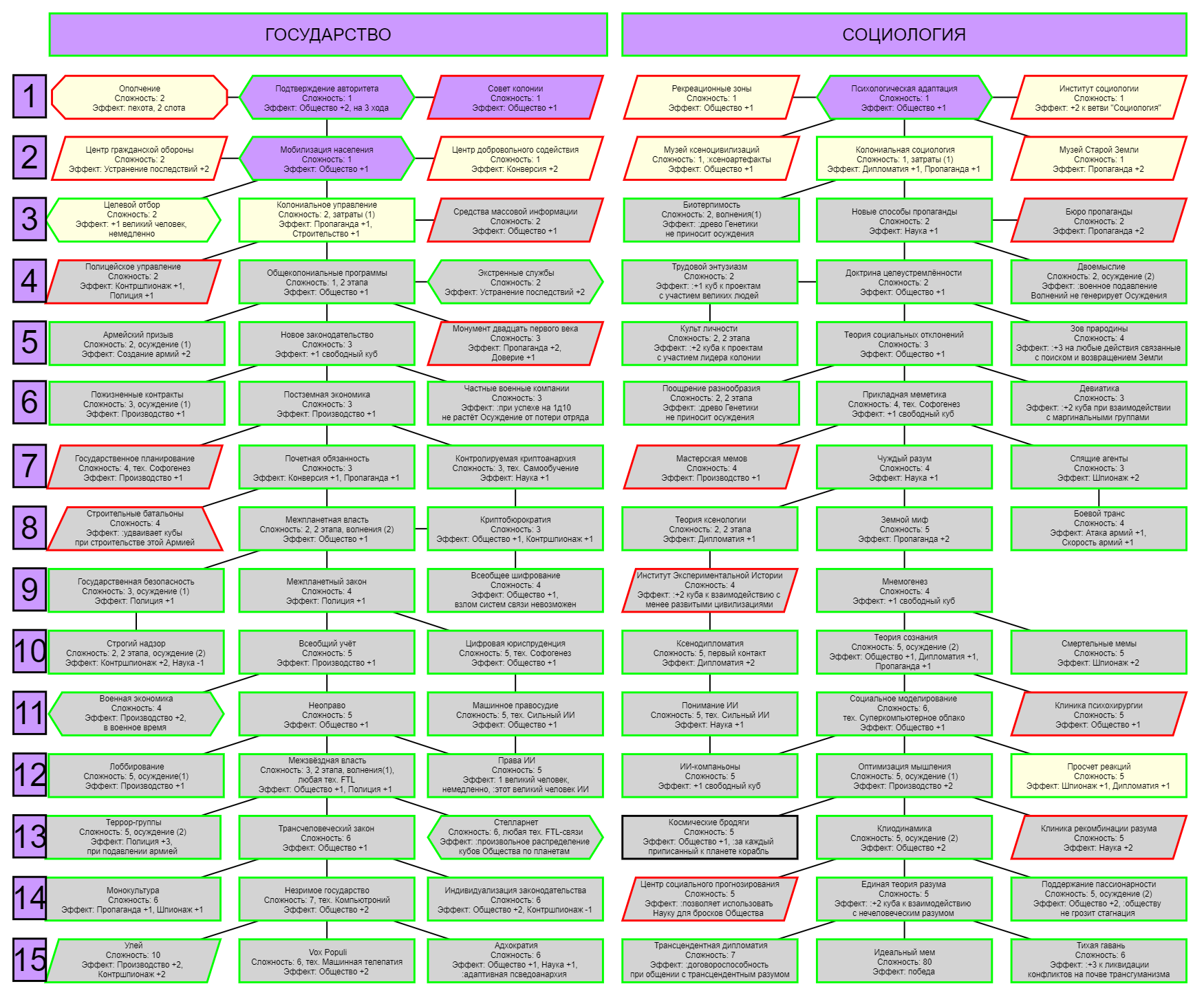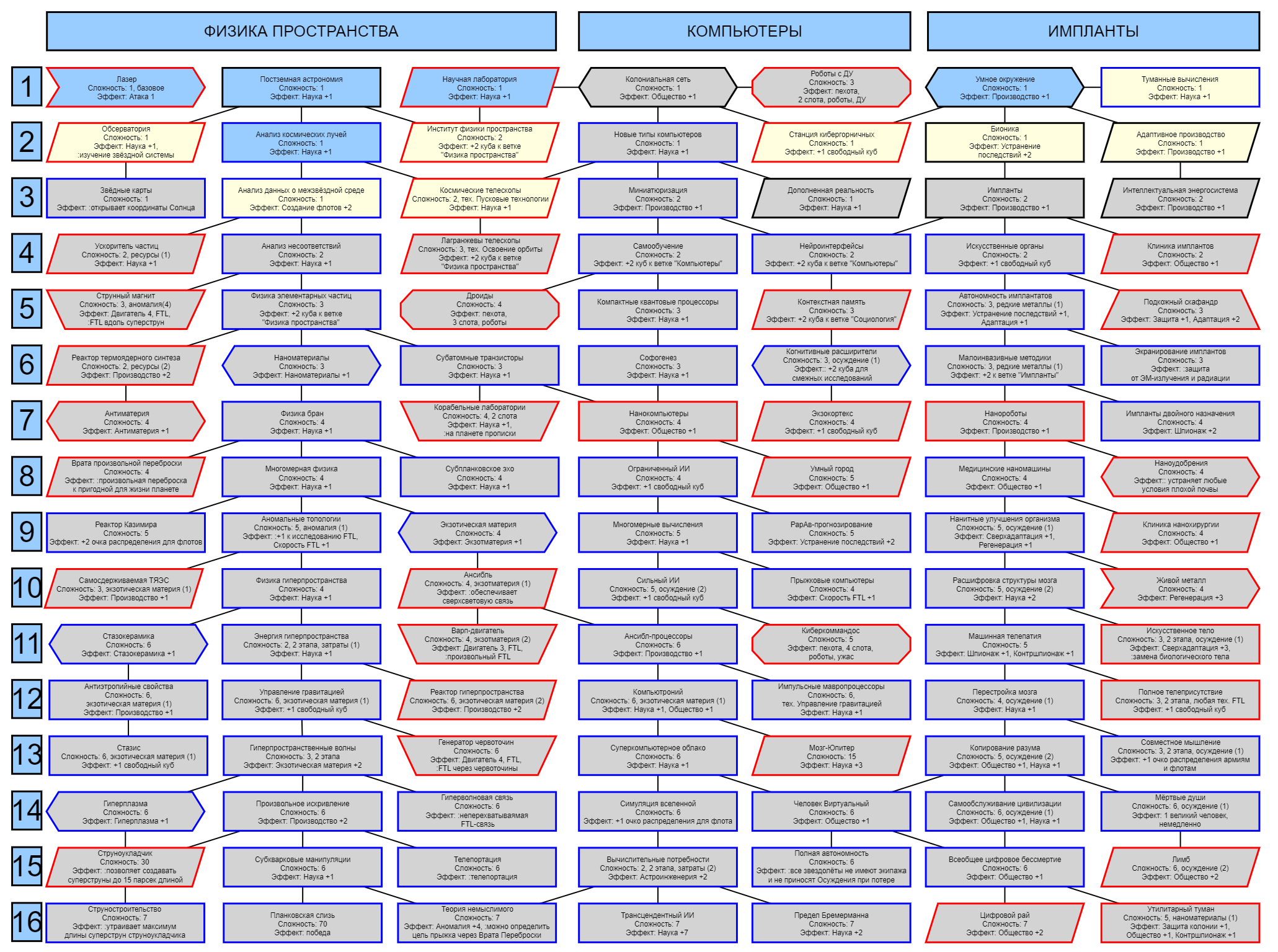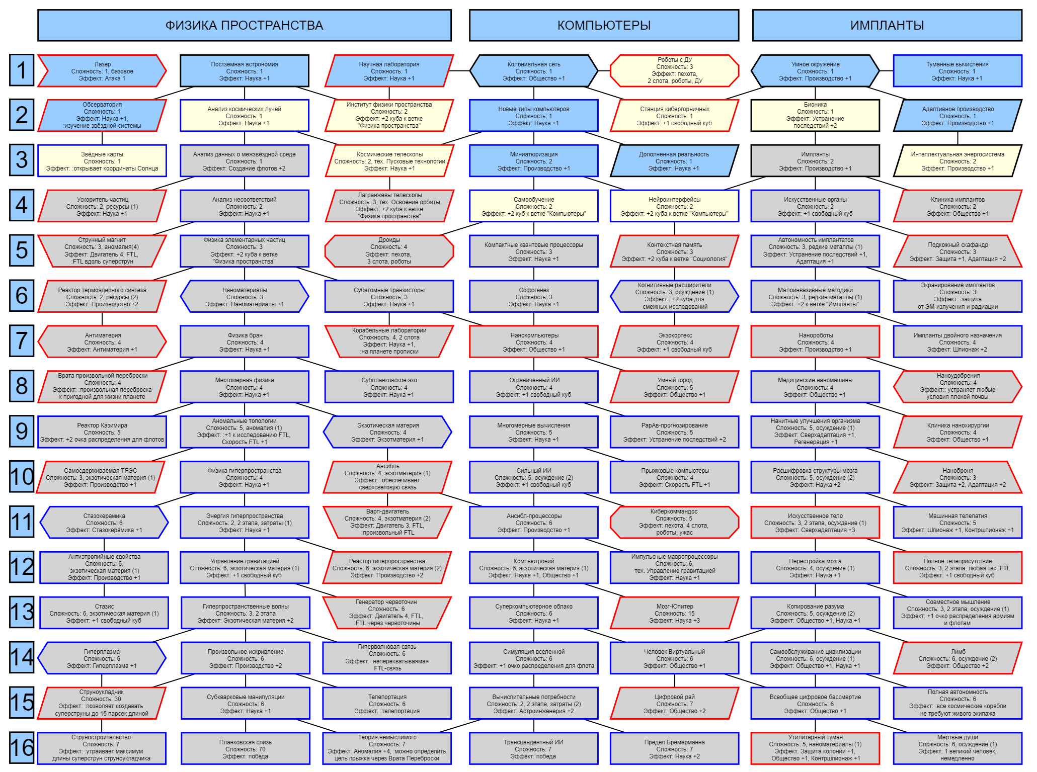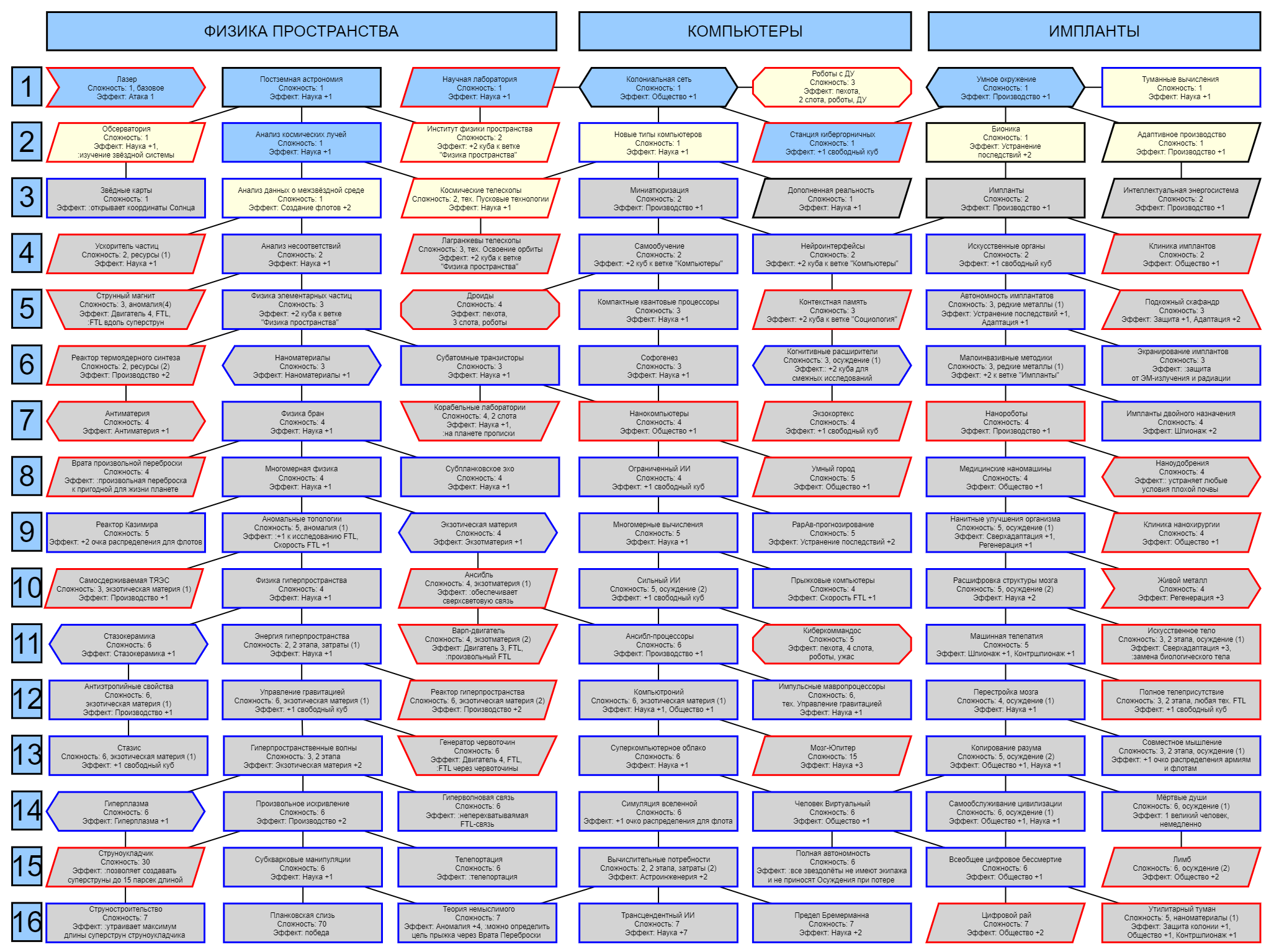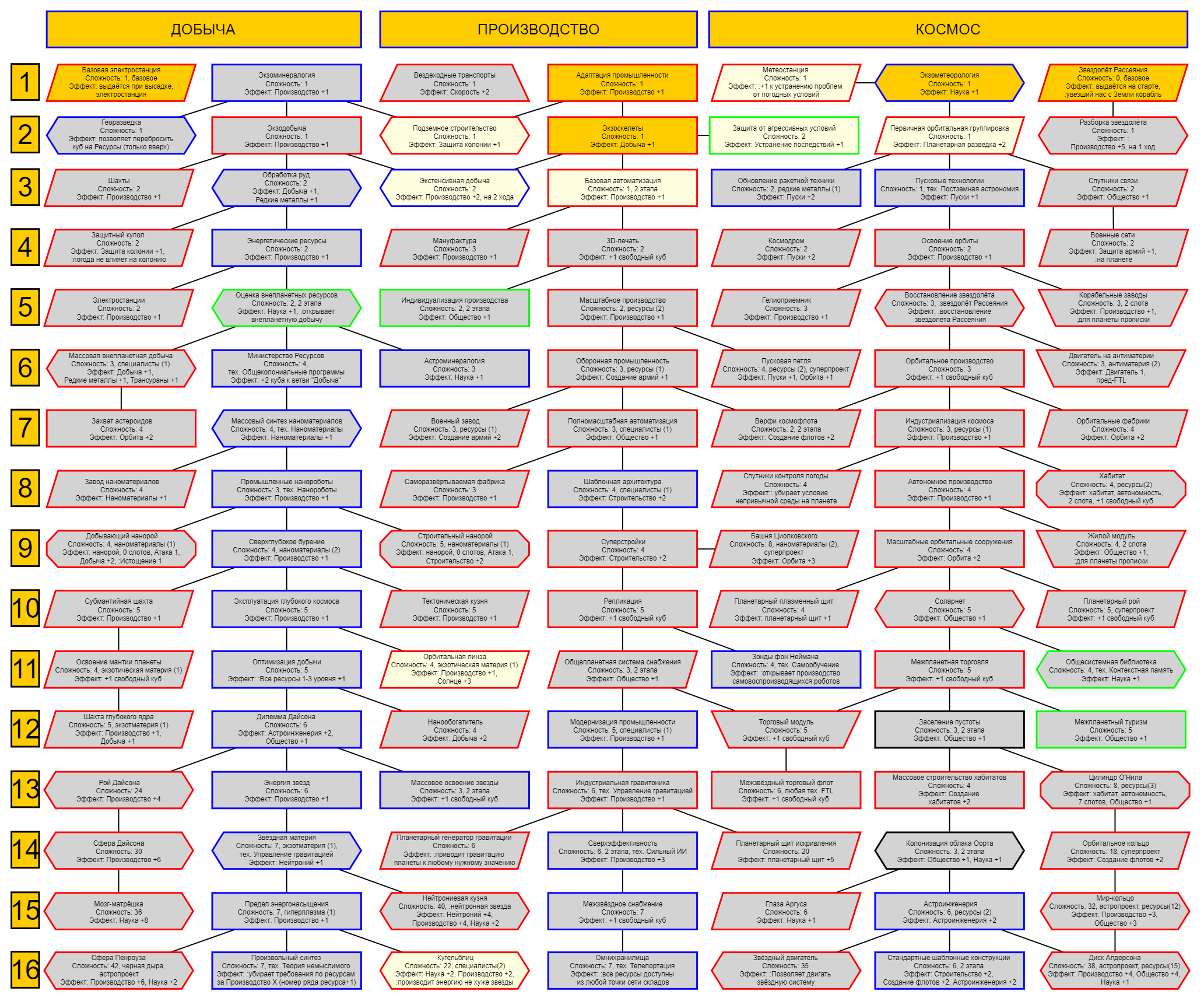 >>704081 > для каждой экосистемы отдельная технология/проект? Игромеханически не предусмотрено, так что один на всë > Строительство кораблей без "Милитаризации орбиты" невозможно? Например каких-нибудь гражданских корыт для разведки, грузоперевозки и добычи? Ниже все правильно сказали, игромеханически - нет. Так в теории корабли начинают строиться сами где-то после Освоения орбиты, но этот никак нигде не отражается. А тебе зачем собственно? > Почему восемь? Вроде ж 4 должно быть Потому что из-за моего косяка в правилах было написано что люди дают свой бонус к любому количеству проектов, а не один раз, как остальные кубы. Вот поэтому.