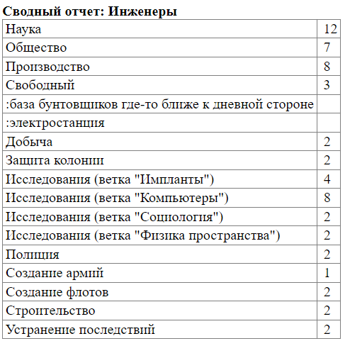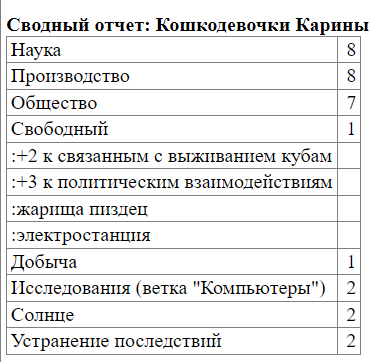 Кароч получается единственный успех в первой попытки на этом ходу это "Новые способы пропаганды". Я раньше не пытался ее изучать и теперь вот изучил. Остальные успехи это либо со второй попытки, либо устранение последствий распиздяйства населения. На первом ходу таких было 4, на втором и третьем по 5. У меня тоже своя таблица в экселе идет.