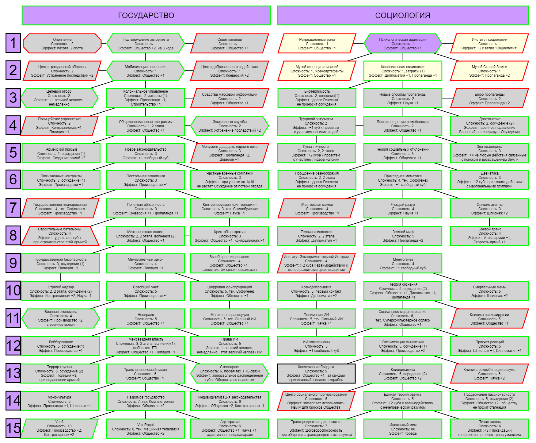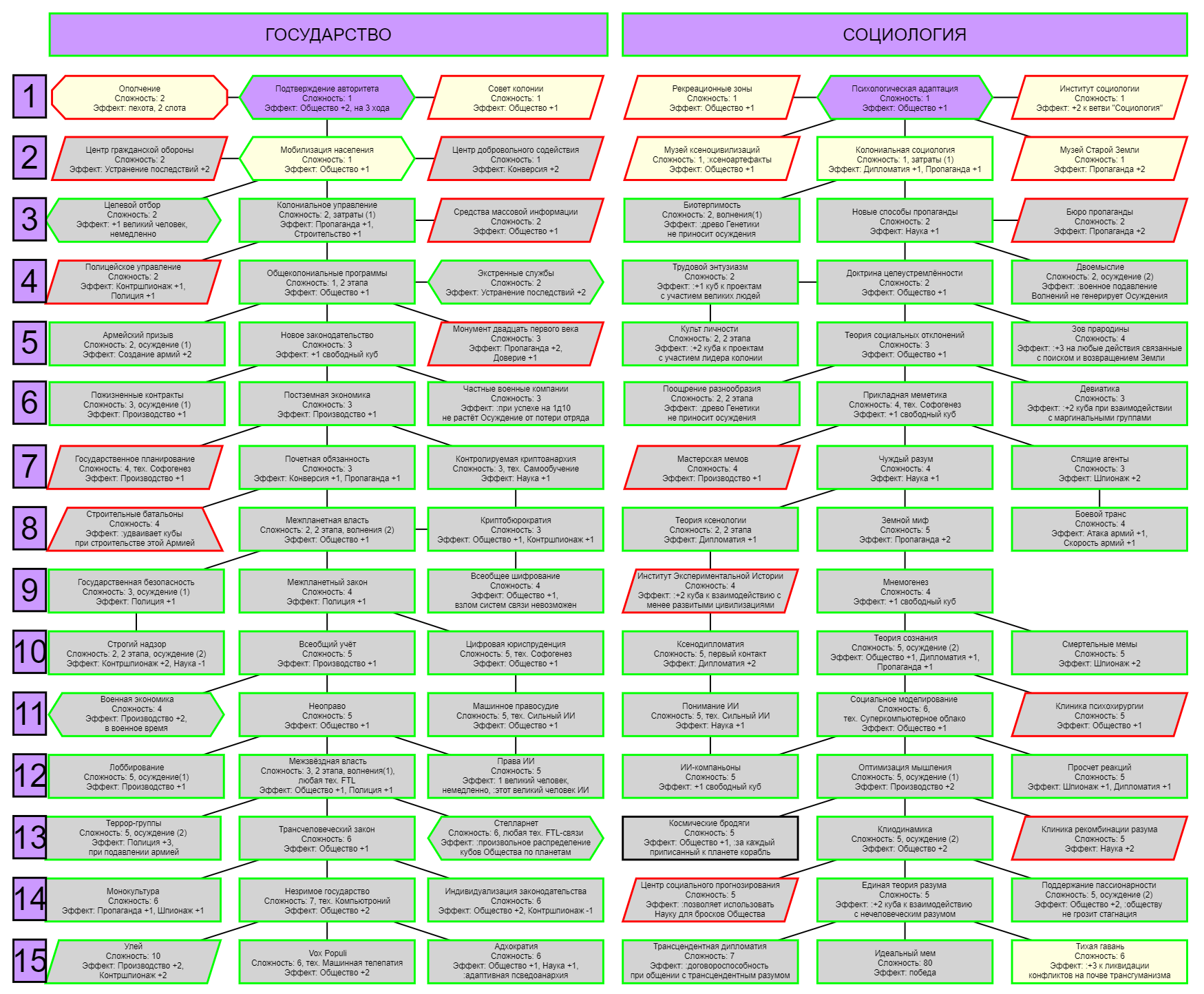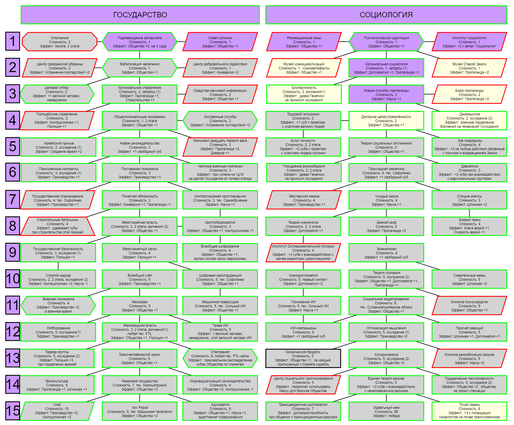 Получается у меня остались два лишних куба Общества. Я бы докинул их в мобилизацию населения, но это же почти как переигрывать, а тут так не принято. Предлагаю следующее решение проблемы: Эти два лишних куба общества я подсовываю вместо двух кубов Науки в Секвенировании ДНК, а два куба Науки я вложу в Анализ данных о межзвездной среде. М?