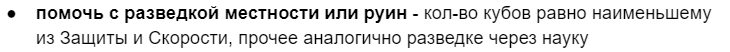 >>704113 >конверсия Бонус на мирные проекты с участием армии, как в жизни. В "небоевых действиях отрядов" указано, как армия может помогать с гражданскими проектами. > Войска нельзя использовать для большинства сторонних действий. Однако они могут: подавить волнения - ??? (будут волнения - будет понятно, что и как здесь назначать) справиться с некоторыми угрозами - напр. астероидом или распоясавшимися ксенобронекрысами если речь идёт об уничтожении, перехвате или запугивании - кидаются кубы Атаки если об очистке заражения или стройке армейским способом - Защиты если об эвакуации или каких-то срочных перевозках - Скорости помочь с разведкой местности или руин - кол-во кубов равно наименьшему из Защиты и Скорости, прочее аналогично разведке через науку отловить образцы ксеносов - аналогично разведке местности, см. чуть выше Если отряд отказывается от любых действий в ход, за каждые 6 его очков характеристик (округление вниз) колония может использовать 1 свободный куб.