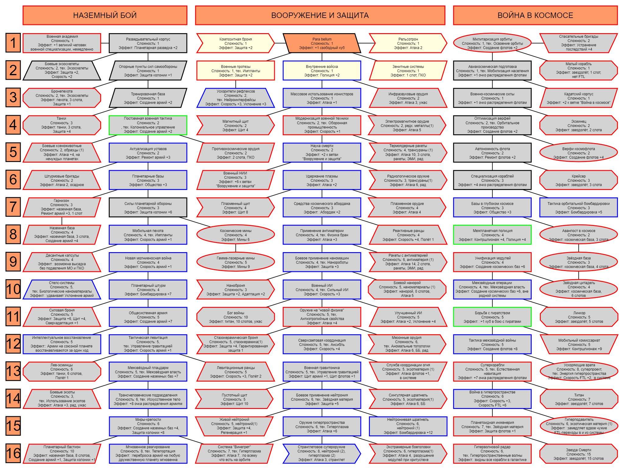 >>712868 Да, дополню, чтобы не сильно наимбовать с докупкой, можно ввести условие, что максимальный уровень Техи в ветке - 4, например. Чтобы не скупать вообще всё подряд и не было такого, что мы не выученную военку начали выкупать