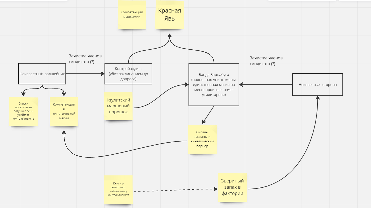 Давайте соберём все вместе: Ситуация: Нвш начальник любитель попиздеть за жизнь. Расследованием не занимался . Ополченцы блох не ловят и не собираются . Спросу с них никакого, нет начальства, нет ответственных. Факты: 1. Контрабандист убит магическим образом Свидетелей нет В свертках хуй знает что В колдовстве никто не разбирается 2. Банда некоего Барнабуса убита Наш предшественник хуй знает где В свертках там тоже самое что здесь