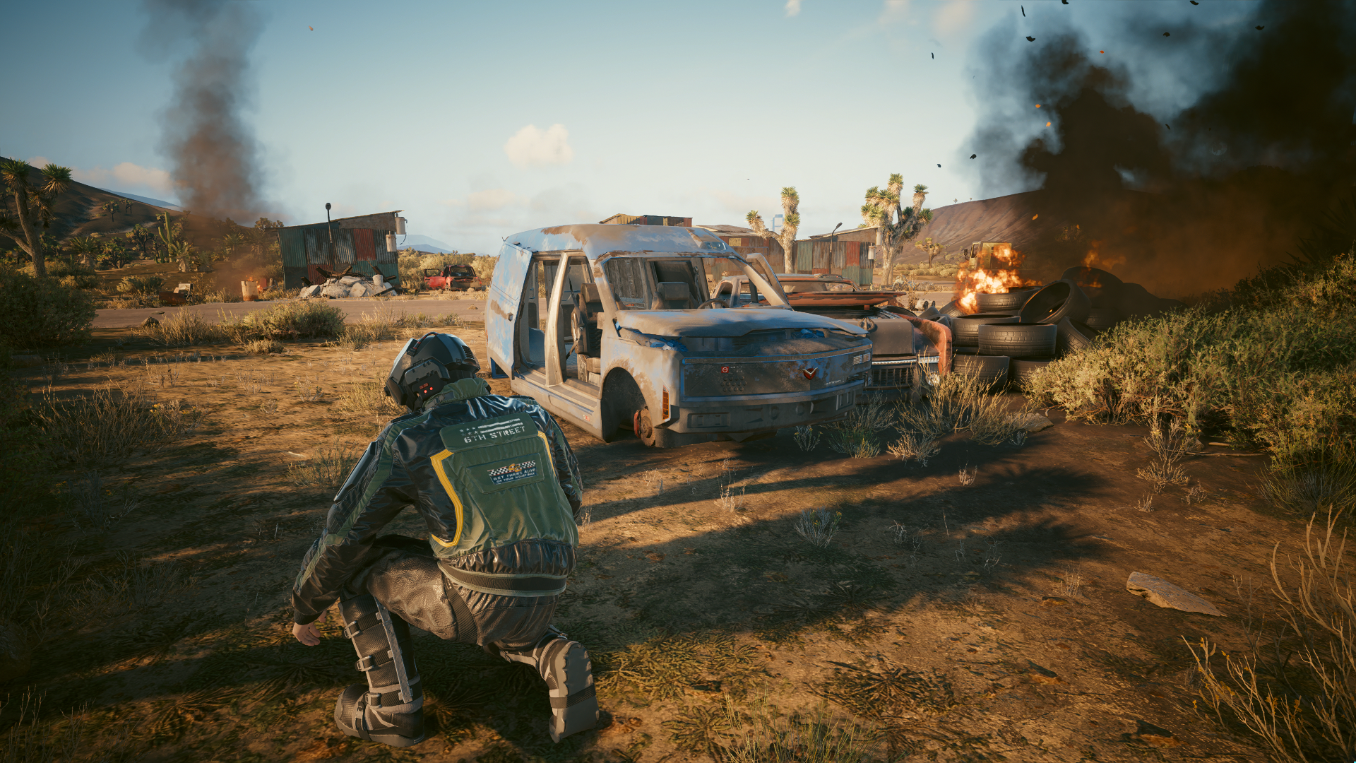 Проснувшись в фургоне, и оглянувшись на бескрайние просторы пустыни, я завëл двигатель и двинулся в путь, откинув солнцезащитный козырек, я заехал на начало дороги.