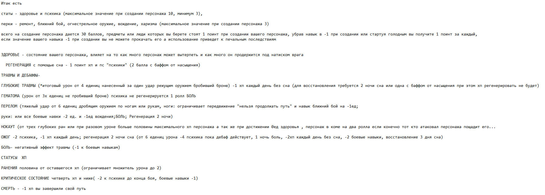 >>725327 >скрипт Это просто html - архив самого первого тогда. Там в самом низу правила, подписаны как "Статы", "Фургон-база", посмотри, там их штук восемь. Актуальны файлы с расширением .docx!