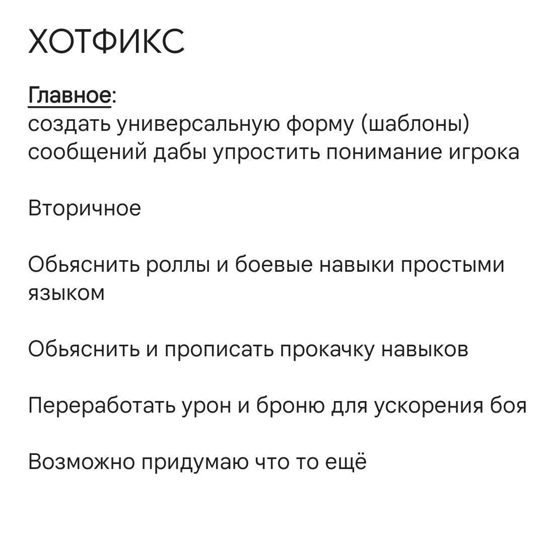 P.S. Перед добавлением всего этого в основную механику проведи одно игровое тестирование самостоятельно.