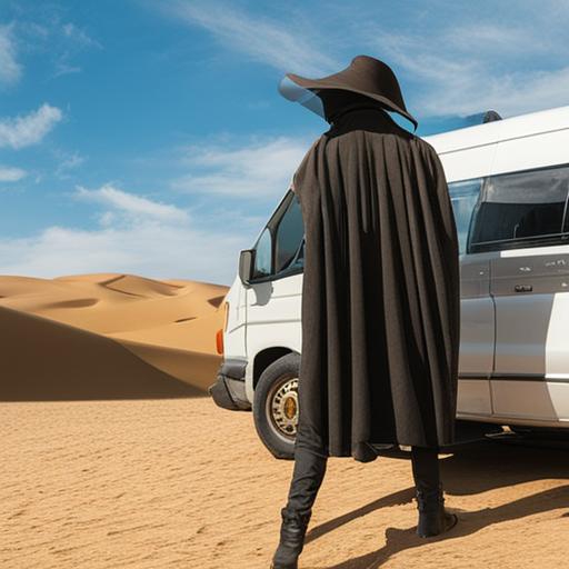 Мужчина в одной звериной шкуре вышел было из фургона, но одернул ноги от кипящего песка. Забравшись на заднее сиденье, он принялся ждать, когда солнце закатится за горизонт. Кузов был пуст, поэтому человек оказался в безвыходном положении.