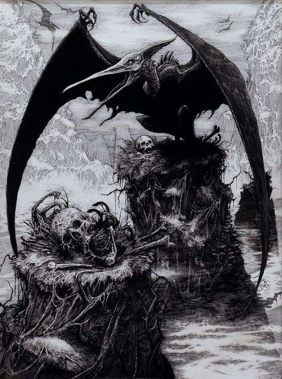 > урон 4 1 = 4 Один из летающих хищников резко взвыл, получив свою дозу железа в организме. Оставшийся птеродактиль, испуганно заверещав, бросил мёртвых товарищей, взмывая ввысь, назад, к скалам.