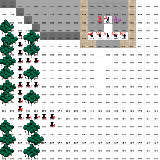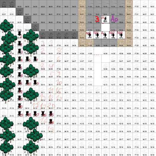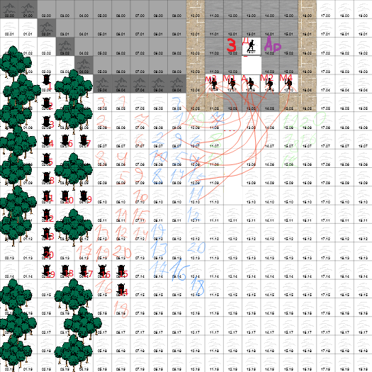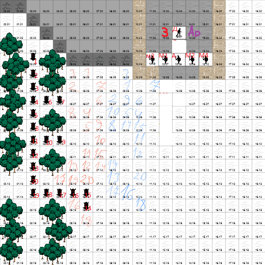 План заключается в том, чтобы пепельные могли подойти только на клетки 12.04, 13.04 и 14.04. За ними еще плотнячком много поместится тварей, можно будет гранату швырнуть Траншея таким макаром не понадобится