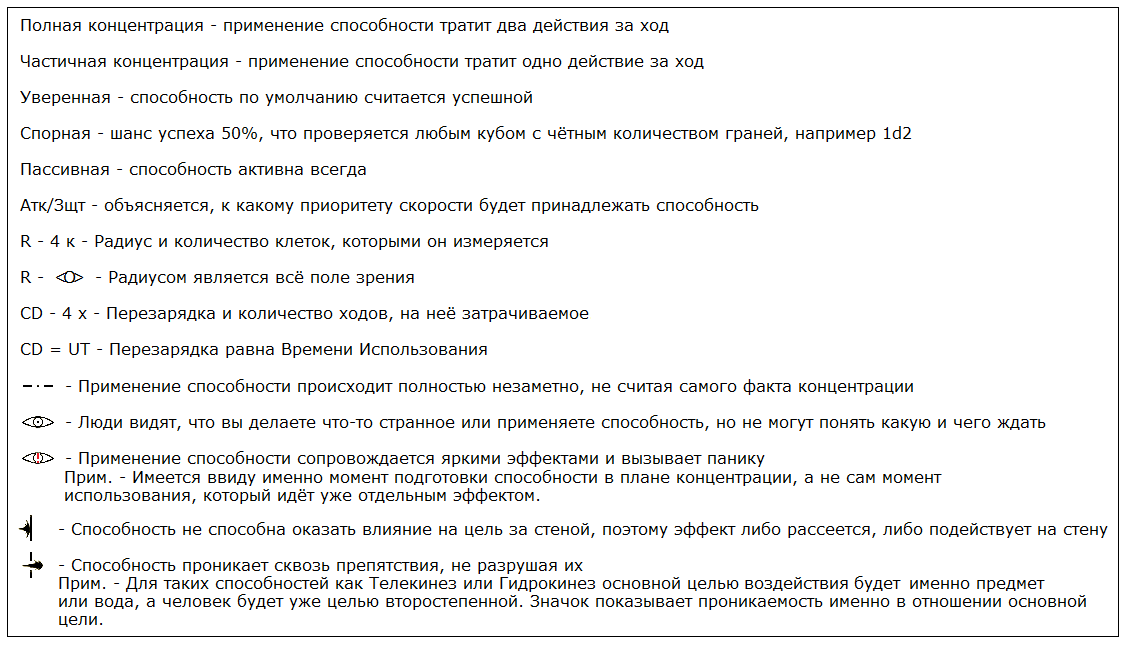 Изначально у каждого персонажа есть 10 очков для выбора способностей, расширить которые можно взяв от 1 до 3 недостатка, каждый из которых даёт 1 очко (ВАЖНО: недостатки всегда превалируют над способностями)