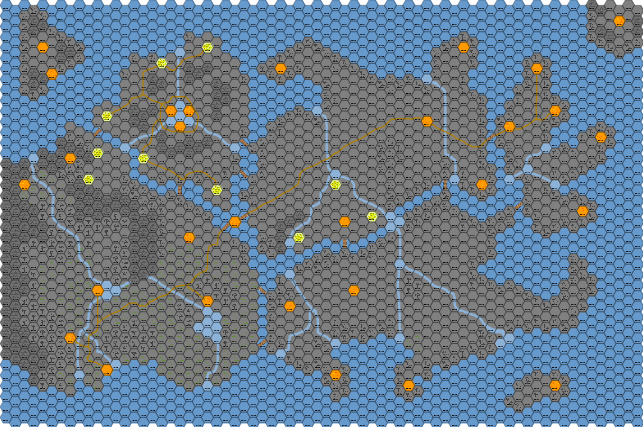Мне кажца это, надо тестовую игру на вдесятеро меньшей карте провести и по ее результатам, подкорректировав правила, уже основную. А то я пока сижу, пытаюсь что-то сгенерить, но все равно ничего не понимаю