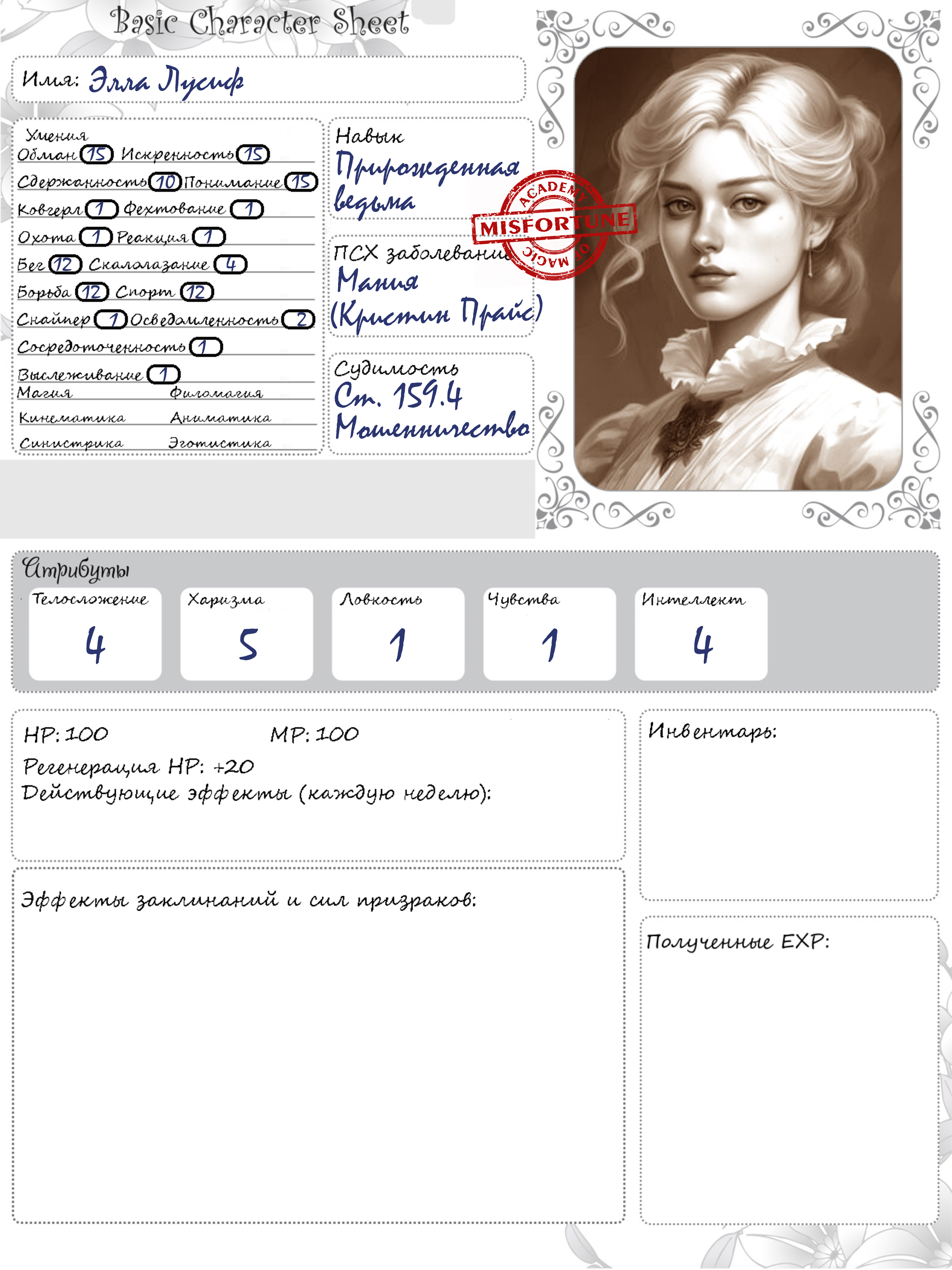 >>820196 >Будем считать, что в академию меня засунули «мы тебе срок уберем, но езжай-ка ты, цаца, магии в Мисфорчун учиться. Насильно!» Добровольно-принудительное действует как раз для тех, кто совершил преступление, и срок снимают только по окончании обучения. В общем, либо крестик снимать, и оставаться с уголовкой, либо штаны одевай, и ретконь своему персонажу убийства. Иначе странно получается - преступления предоставляют преимущества из-за факта того, что персонаж готова пойти на незаконные поступки, или имеет опыт в их совершении. Считать, что Саманта кого-то убила и не получила преимуществ нарушает погружение, давать ей преимущества без штрафа несправедливо по отношению к другим игрокам. >>820268 Умения "Травница" и "Музыкантка" предоставляют бонус а получаемым EXP.