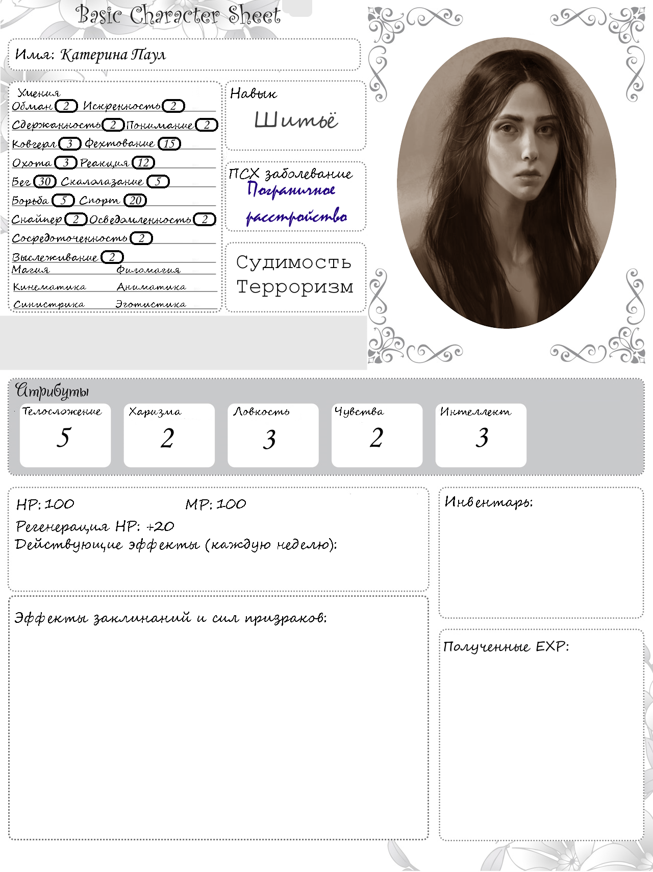 Если мой вариант с паранойей от тайной преследовательницы ок, то возьму паранойю. Если не ок, то аспергера по филомагии. В общем надо определиться, буду ли я задроткой-зубрилкой или зашуганной тлёй, после этого выкачу квенту.