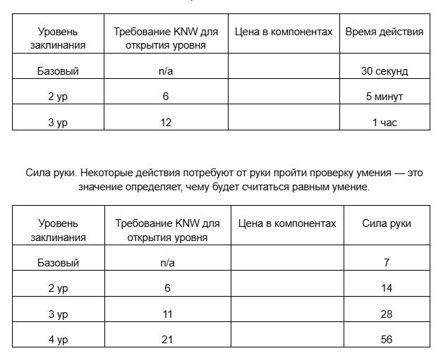 >>822206 Заклинания сами по себе на 3/4 написаны. Сами эффекты придумать легко, а вот распределение необходимых KNW и назначение цен в компонентах - на это наверное нужно целый рабочий день потратить, пялясь в эксель. Игровой наверное будет или в субботу, или в воскресенье. Зависит от того, закинет Соня все же персонажа, или нет.
