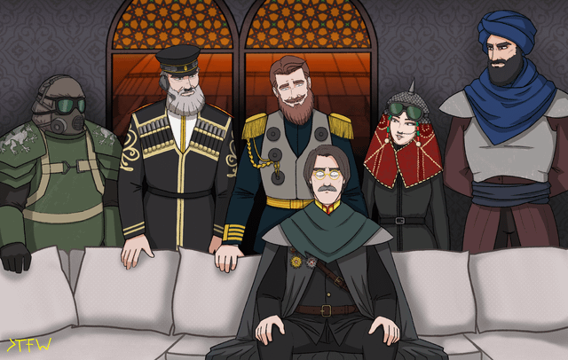 Не, я планирую караван из стимпанковых шагоходов, в, как это водится, МНОГОНАЦИОНАЛЬНОЙ колониальной империи. За основу возьму фейти, форкну. Эстетическая база, кхм - Германия конца 19 века, времен дележки колоний.