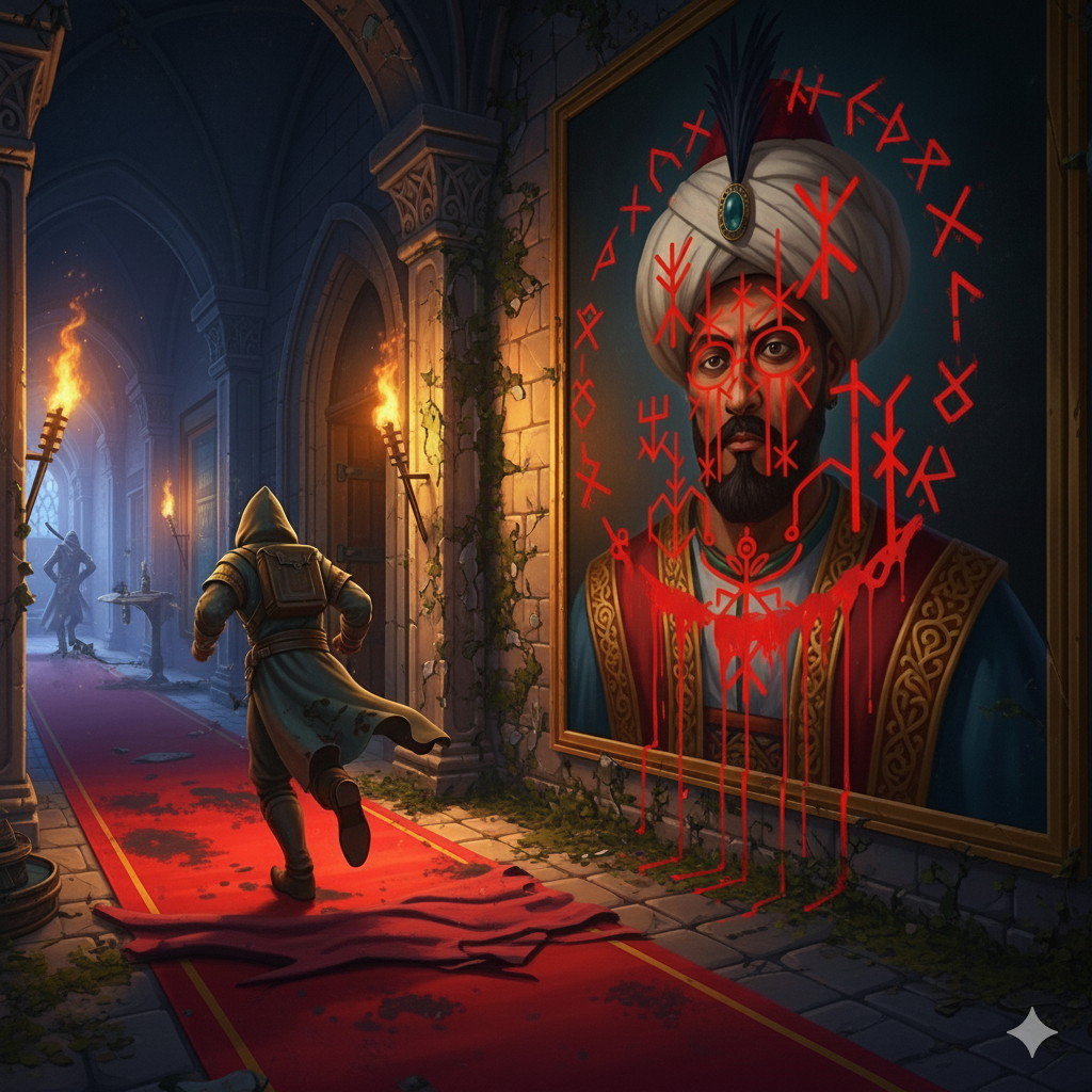 Хотя улик повсюду было разбросано предостаточно, все они лишь подтверждали старые догадки, но ни одна не обещала новых озарений. Задумчивый демон в лёгком замешательстве бродил посреди застывшего во времени безумного карнавала, не зная, за что хвататься. Его внимание привлекли карты старших аркан, прибитые к спинкам кресел в королевском шатре.