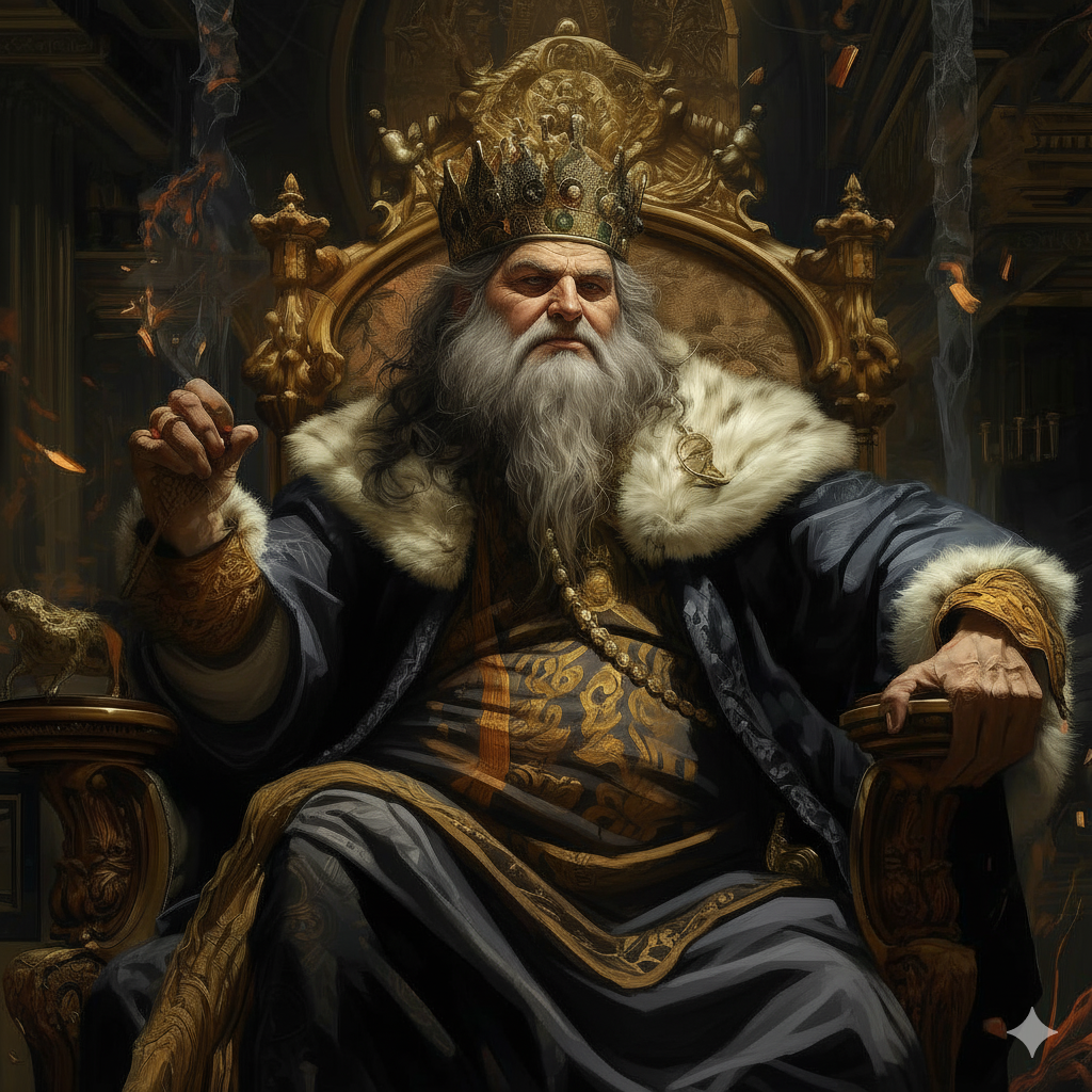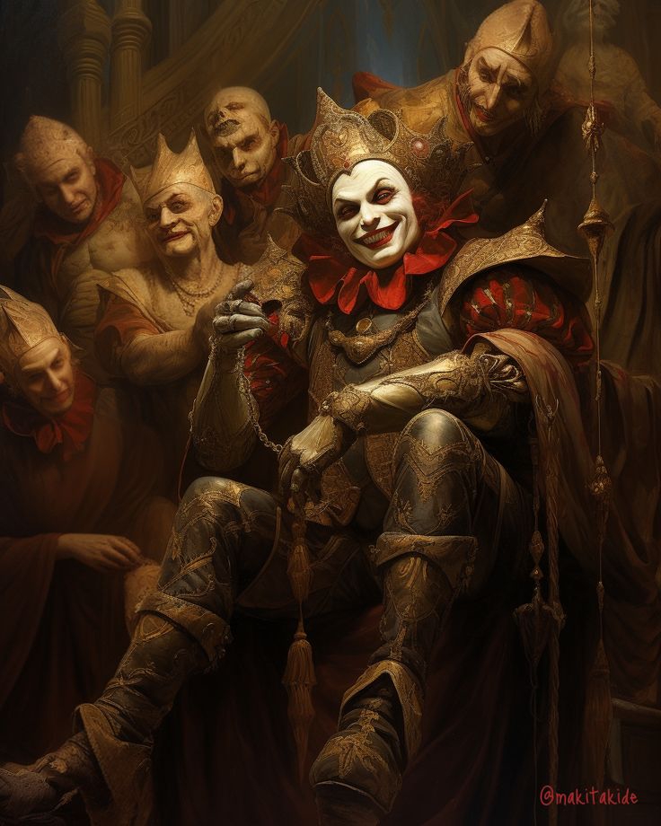 Едва Вальмон закончил свой монолог, как дверь в Совет распахнулась от удара сапога. На пороге стоял пошатывающийся король, ещё более жалкий и нелепый, чем прежде. Сонливость и апатия теперь уступили место гиперактивному игривому настроению, как это часто бывает у пьяниц. Приплясывая и кривляясь, он обвёл взглядом собрание и, счтя свою затею очень остроумной, набросился на десницу с обвинениями: