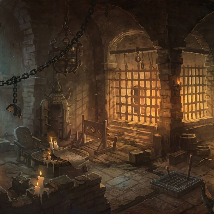 Мор После добротного ужина в компании новообретённых коллег Мор решил без особой цели прогуляться по замку перед сном. Тёмные коридоры его сменялись ярко освещёнными величественными залами, крутые узкие лестницы — просторными террасами с видом на королевский сад, а тихая капелла — шумной кухней. Пару раз он ощутил на себе пристальный взор укрывшегося за колонной или свернувшего в сторону соглядатая, но отнёсся к этому с пониманием, как к разумной мере безопасности. Сам того не замечая, он оказался перед массивной дверью, обитой грубыми стальными щитами. Безрезультатно потянув пару раз за широкое кольцо, служившее ручкой, демон пожал плечами и вернулся на один пролёт выше, когда из растворившегося оконца забрезжил свет факела, а следом загремел тяжёлый замок. На пороге стоял уродливый горбун с бельмом на левом глазу. По габаритам он мог дать фору бывалым чемпионам Ржавой Ямы — эофольского коллизея.