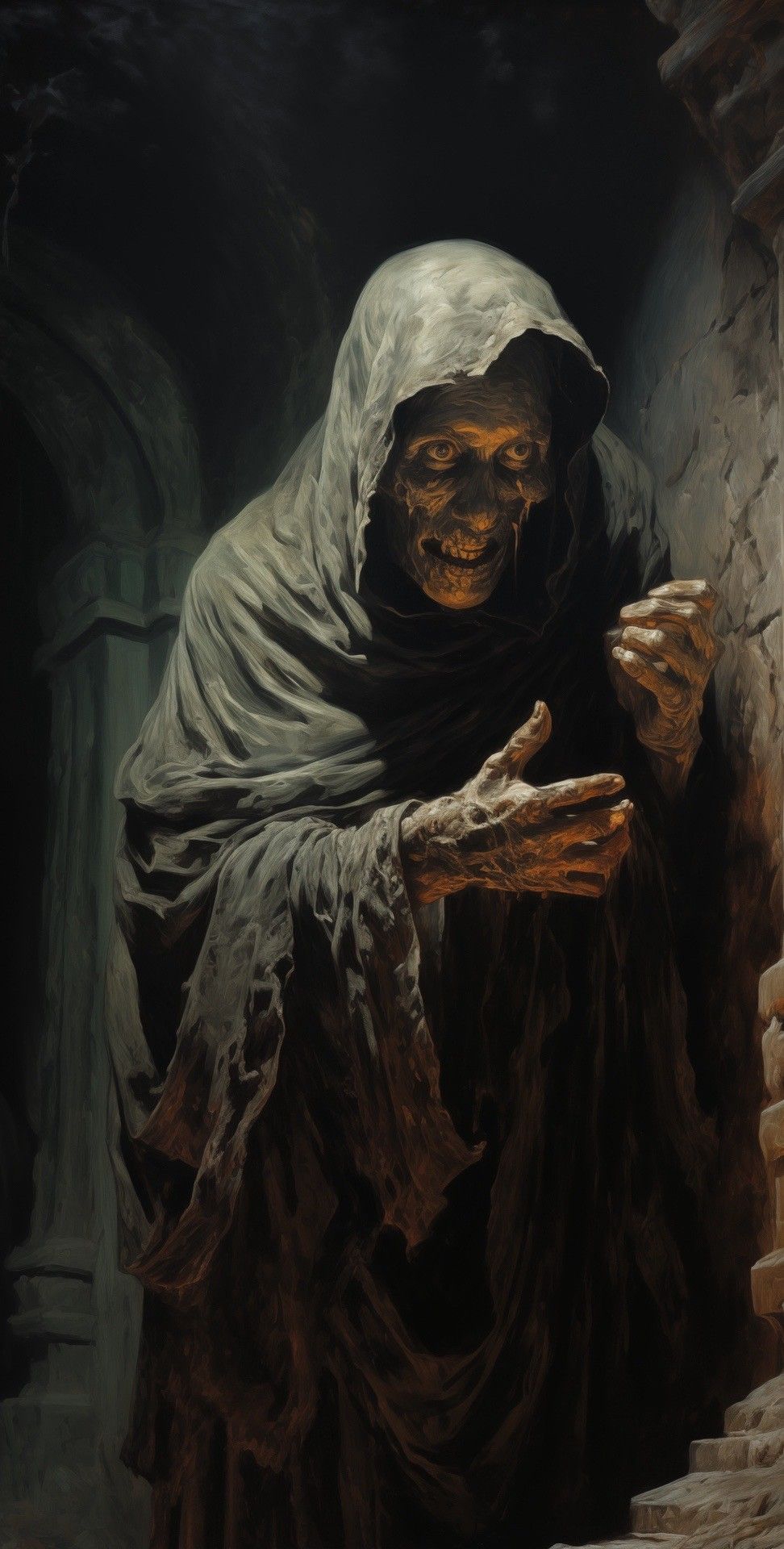 — Ты из этих, что ли? — сжимая жарко горевший факел, квазимодо в одно мгновение обезьяньими рывками сблизился с неподвижно застывшим гостем, бесцеремонно ухватился за ополы чёрной мантии Мора и уставился единственным зрячим глазом на выданный Вальмоном значок. Не дожидаясь ответа, он захромал обратно в кромешную тьму подземелья. — О тебе предупреждали. Иди за мной.