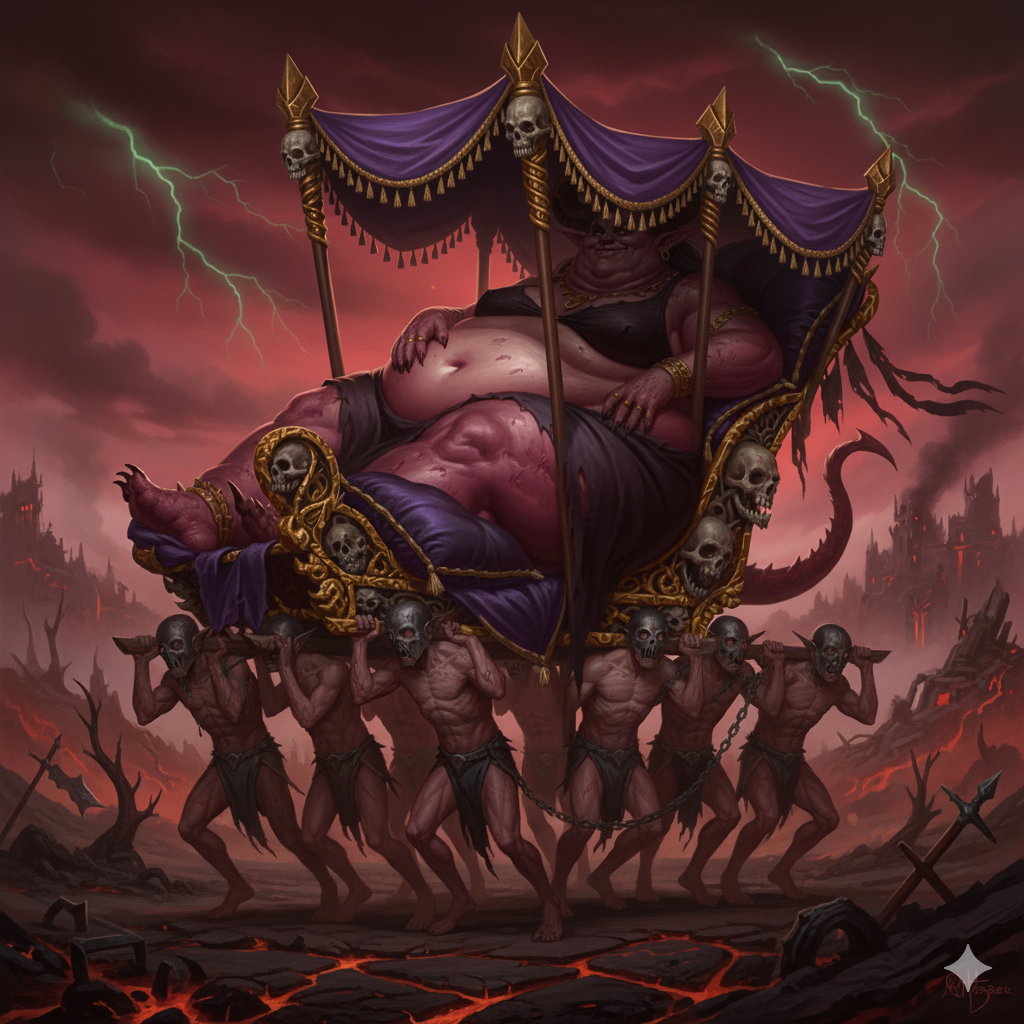 >>862517 Мор размышлял о новых возможностях. С основной части Эофола вновь шли разговоры о вторжении на другие континенты и необходимость набора новых рабов. Полезные вылазки, которые сулили рабочую силу, материалы для строительства и новые игрушки. Особенно ум демона захватила "религия", которая так часто мелькала среди рабов людей. Внезапно, без предупреждения, открылись инфернальные врата, которые никогда не сулили хоть что-то хорошее. Скорее неприятности, ненужные споры или очередного идиота, решившего покуситься на место владыки острова. И, сперва Мор даже приятно удивился. Из портала вылетел человек, не в лохмотьях, как обычно, а даже в чём-то приличном и несколько церемониальном. Не на долго, из-за плесени расползшейся по полу. А потом всё хорошее настроение улетучилось. Появилась она, отродье которое повелитель острова терпел из последних сил. Джезебет, властительница Ик-тарс, обольстительница и манипулятор, а тажке главная головная боль Мора и страх всех его подчинённых, из-за последующих вспышек гнева демона. И всё же, он общался с ней больше всех, сложно было сказать, почему именно. Вполне может быть, что именно её человеческое происхождение являлось главным фактором того, что они до сих пор не схлестнулись в битве насмерть.