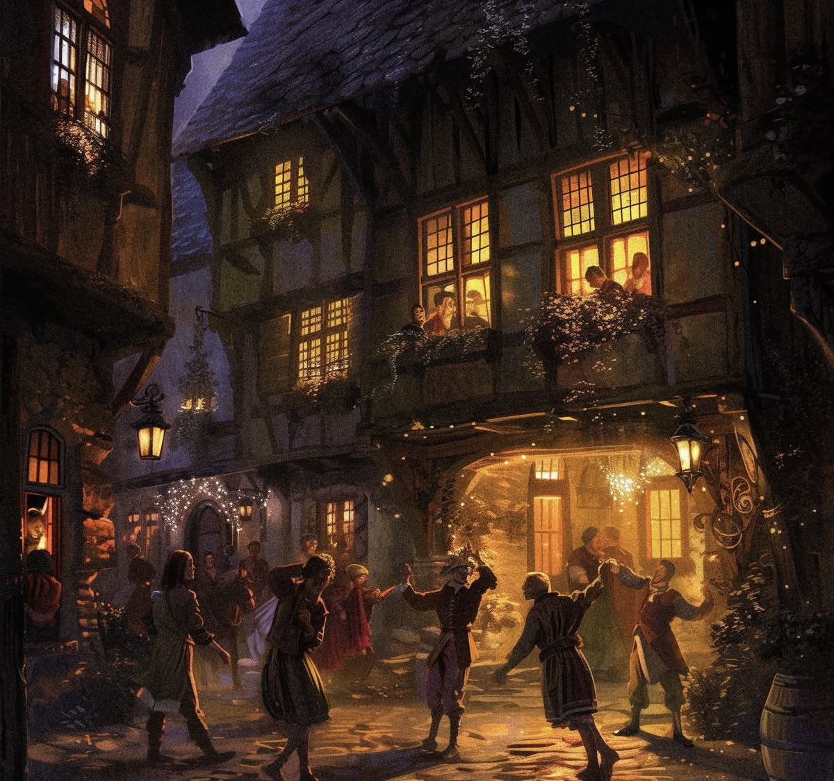 Растерявшиеся и озлобленные солдаты сбились в кучу посреди базарной площади, куда их в итоге занесло, ожидая приказа архимага и хватаясь за эфесы палашей. Окружающая их толпа всё прибывала, в ней вспыхнуло несколько факелов.
