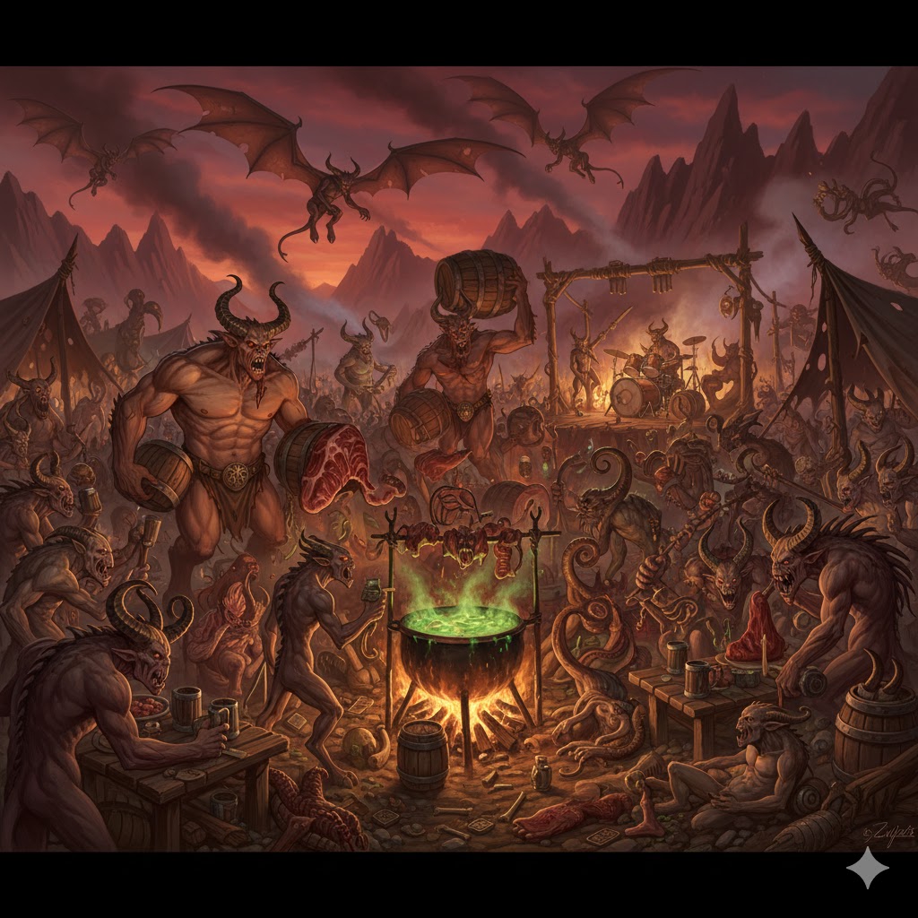 Между пальцев владычицы проскакивали языки пламени. Нужно было ловко выйти из ситуации. И здравый смысл подсказывал одну простую вещь из трёх букв. Мор. Правильно, если оба "старших" решили устраивать между собой мочилово и бунт, в едва налаженном демоническом государстве - угроза сослать обоих на один большой гриб должна была отрезвить обоих. Поэтому и Зеб, и Изерольх были вызваны в главный зал, где Джезебет даже несколько непредвзято выслушала обоих и жалобы друг на друга, что бесы погрязли в распутстве и даже не высасывают ману, а демоны отказываются быть бесплатной тягловой силой. Едва-едва усмехнувшись, владычица одним из крыльев указала на Мора, стоявшего в тени и также молча, со своей известной грибной мрачной мордой, слушавший обоих. И сейчас создавался первый прецедент, когда владыка ада вмешивался в дела другого не ради своего интереса