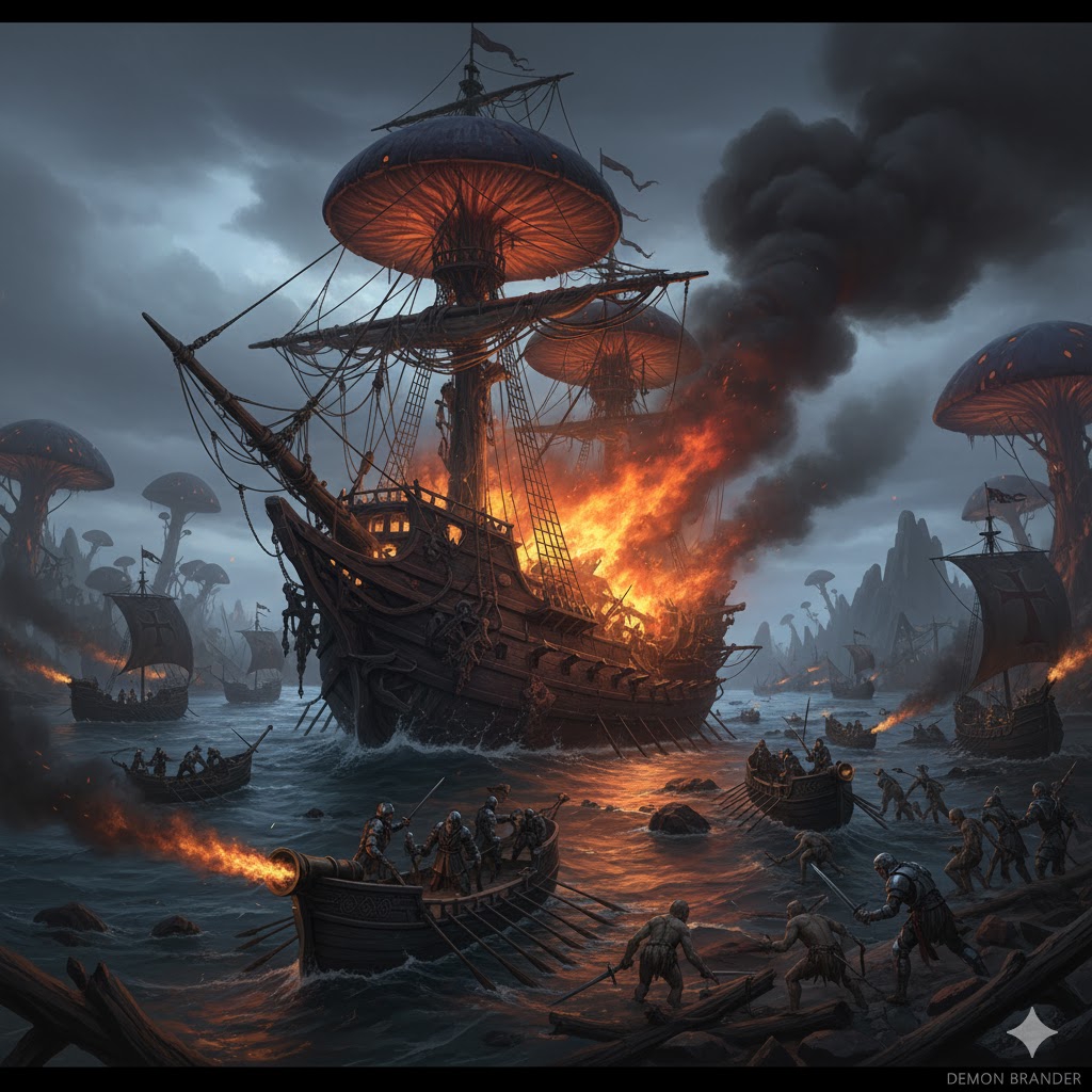 От успешно достроенной верфи на юго-западе Терра Инкогнита вот-вот должны были отчалить последние транспорты, по частям перевозившие гигантский сборный осадный огнемёт, едко прозванный Гариусом «Жопой Изельрох», которым инквизиция планировала выкуривать несчастное грибное воинство.