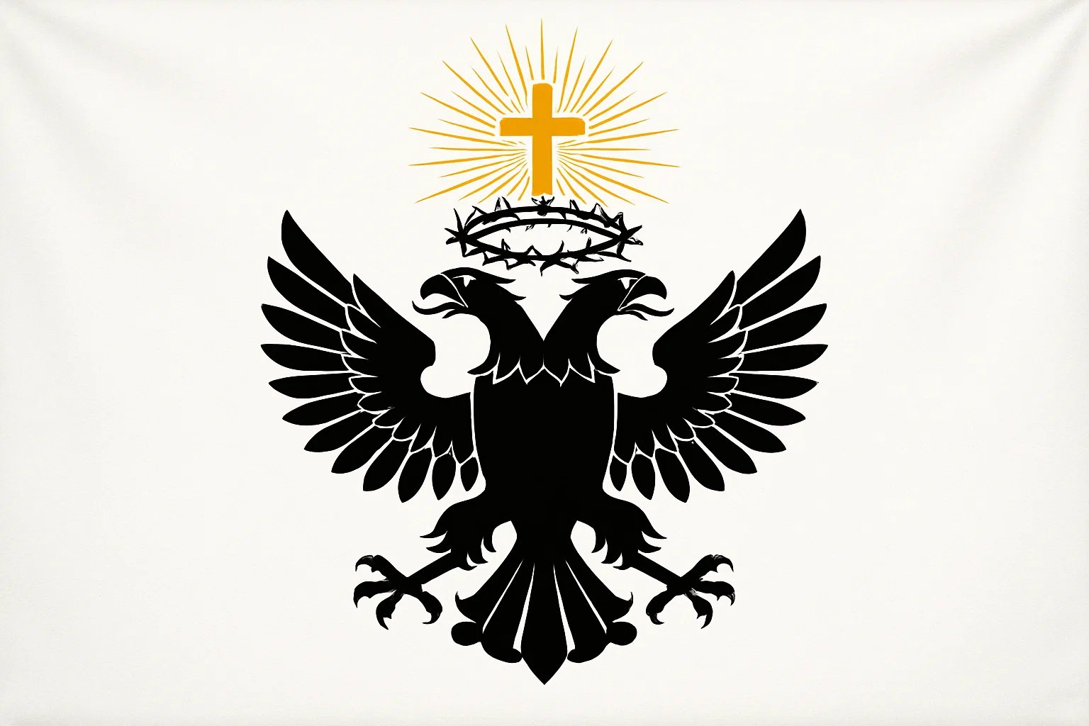 Символика и кодекс чести Флаг: белое знамя с чёрным двуглавым орлом, увенчанным терновым венцом, над которым сияет золотой православный крест.