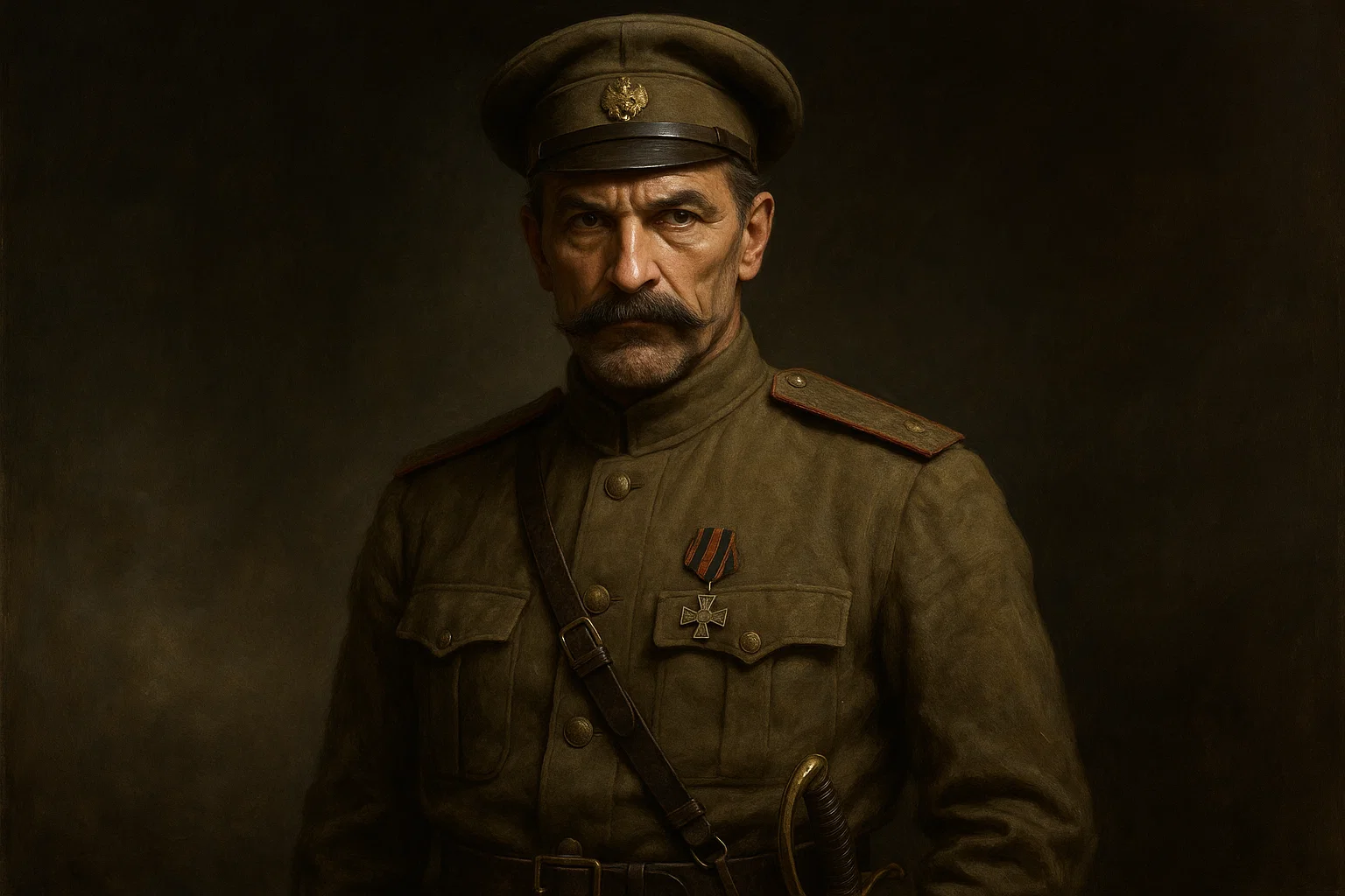 --- Дополнительно --- Лидер: генерал Василий Николаевич Дорошенко Прозвище: «Дозорный» — за привычку лично проверять позиции и за сеть осведомителей. Происхождение и карьера: - Потомственный казак из Черниговской губернии. - Начал службу в кавалерии, участвовал в русско-японской войне, возглавил разведывательный отряд. - В Первую мировую руководил разведотделением на Кавказском фронте, затем особым отделом штаба румынского фронта. - Организатор агентурных сетей, мастер контрразведки и дезинформации. Характер: - Коварный, расчётливый, интриган, но дисциплинированный. - Солдаты уважают его за то, что он делил с ними тяготы фронта. - В общении — холодный, короткие приказы, сдержанная ирония. Любит музицировать и слушать Александра Вертинского и Варвару Панину. - Считает, что «отречение Царя» должно быть искуплено кровью врагов. Внешность: - Высокий, крепкий мужчина лет 50. - Усы в казачьем стиле, на висках сединa. - Тёмные глаза, пронизывающий взгляд. - Простой походный китель, шашка, минимум наград. Связи: - Надёжные сторонники в офицерской среде и контрразведке. - Покровители из буржуазии и аристократии. - Тайные контакты с духовенством и офицерскими клубами.
