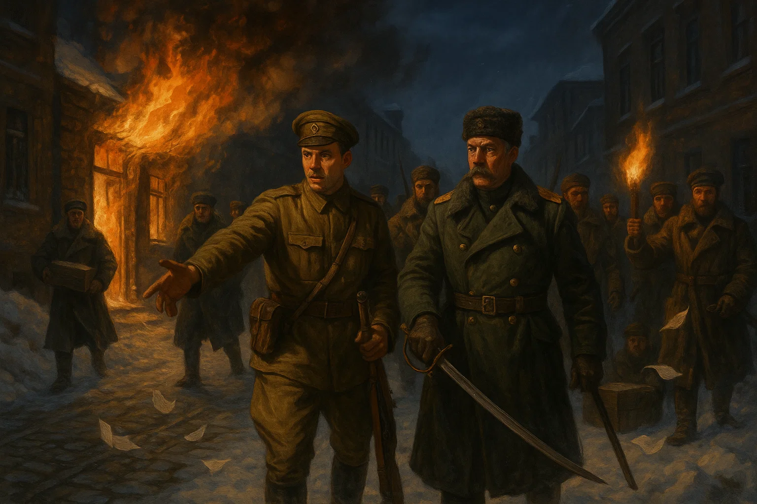 Свеча у портрета дрожала, отражаясь в глазах детей Романовых на фотографии. Голос Вертинского плыл дальше, тянул скорбную мелодию, а за окном ружейные залпы сливались с криками толпы. Здесь, в этой тесной каморке, рождался заговор, которому предстояло бросить вызов не только Временному правительству, но и самой России, скатившейся в хаос.