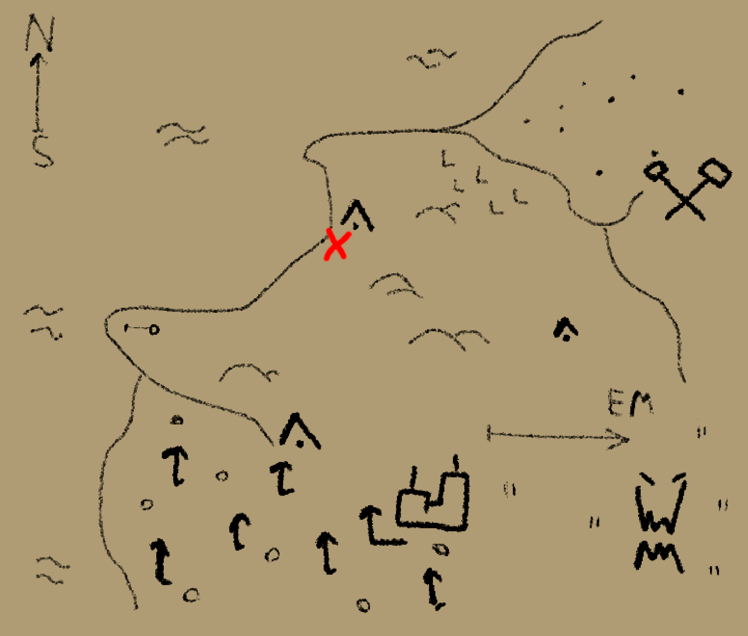 Карта была торжественно вручена одному из бойцов и по ней, кое-как вооруженный отряд (с запасом провизии на сутки пути в одну сторону) отправился в путь. Оставшиеся орки занялись привычным промыслом, ища кормежку на день (+очень мало рыбов), а шаманы в юрте усопшего главного шамана начали проводить незамысловатые ритуалы (нецеленаправленное исследование магии, 1/5 ходов).
