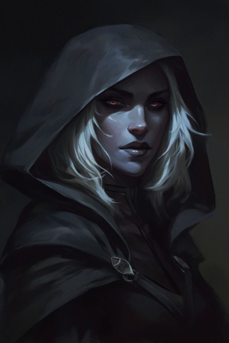 Интересная ситуация развернулась, когда фигура в балахоне решила вмешаться в пользу Квала. В ладони едва заметно показалось лезвие выкиднухи, и фигура попыталась заехать Элу по почке. Но человек тоже не зря питался своим хлебом и успел отскочить. В итоге, междусобойчик превратился в равноценную драку два на два. И приглядевшись слегка повнимательнее, Квал не сумел сдержать удивление. В момент нападения на Эла, фигура подалась вперёд и стало ясно, что грудь была женской, как минимум упругий второй размер. Но если это можно было списать на кураж битвы, то отблеск красных глаз, как у него самого, и утончённые черты лица в виде тонкого носа и подведенных губ на это уже явно говорил, что владелица всего этого безобразия, в хорошем смысле, тоже была из Дроу