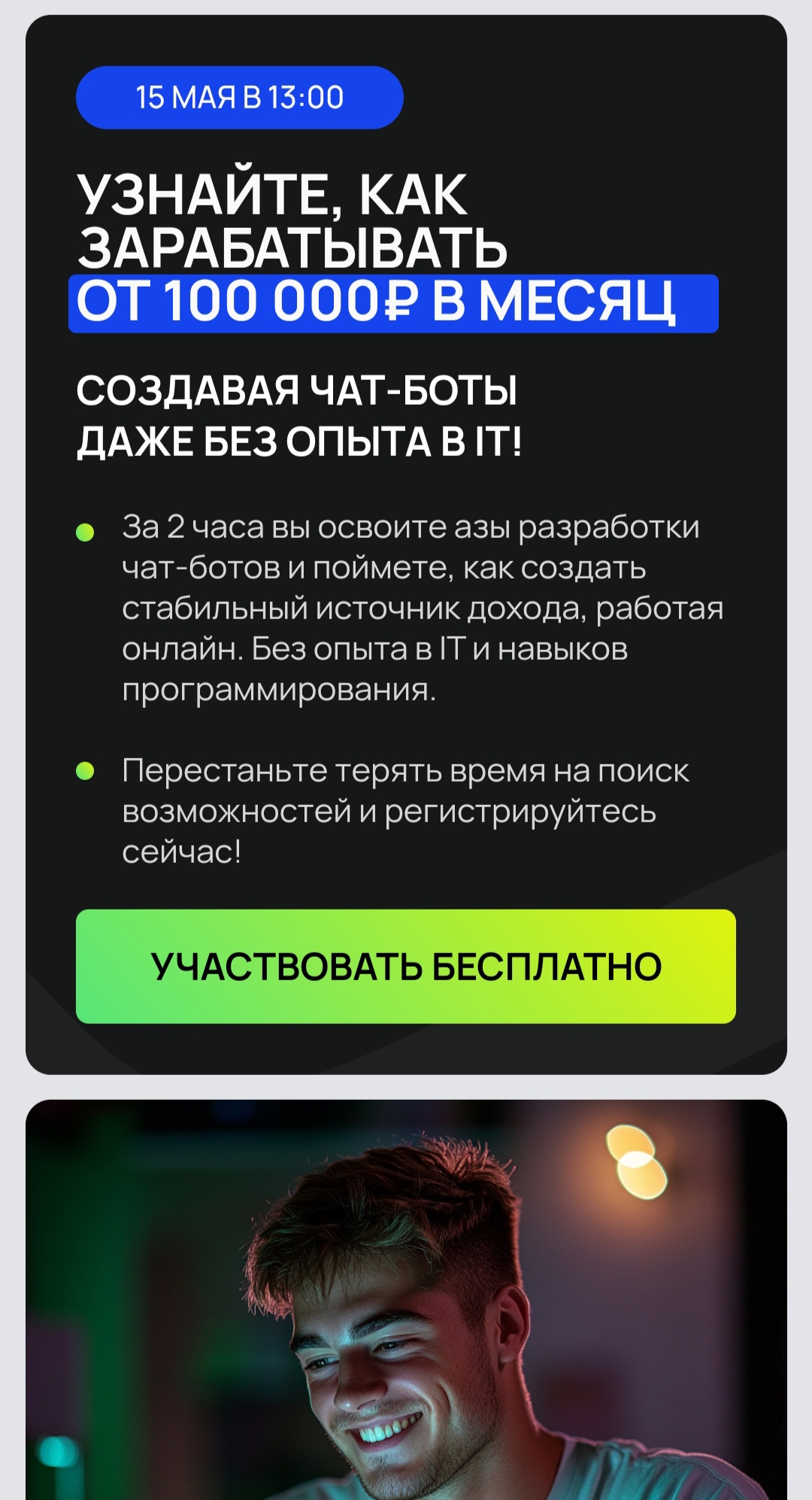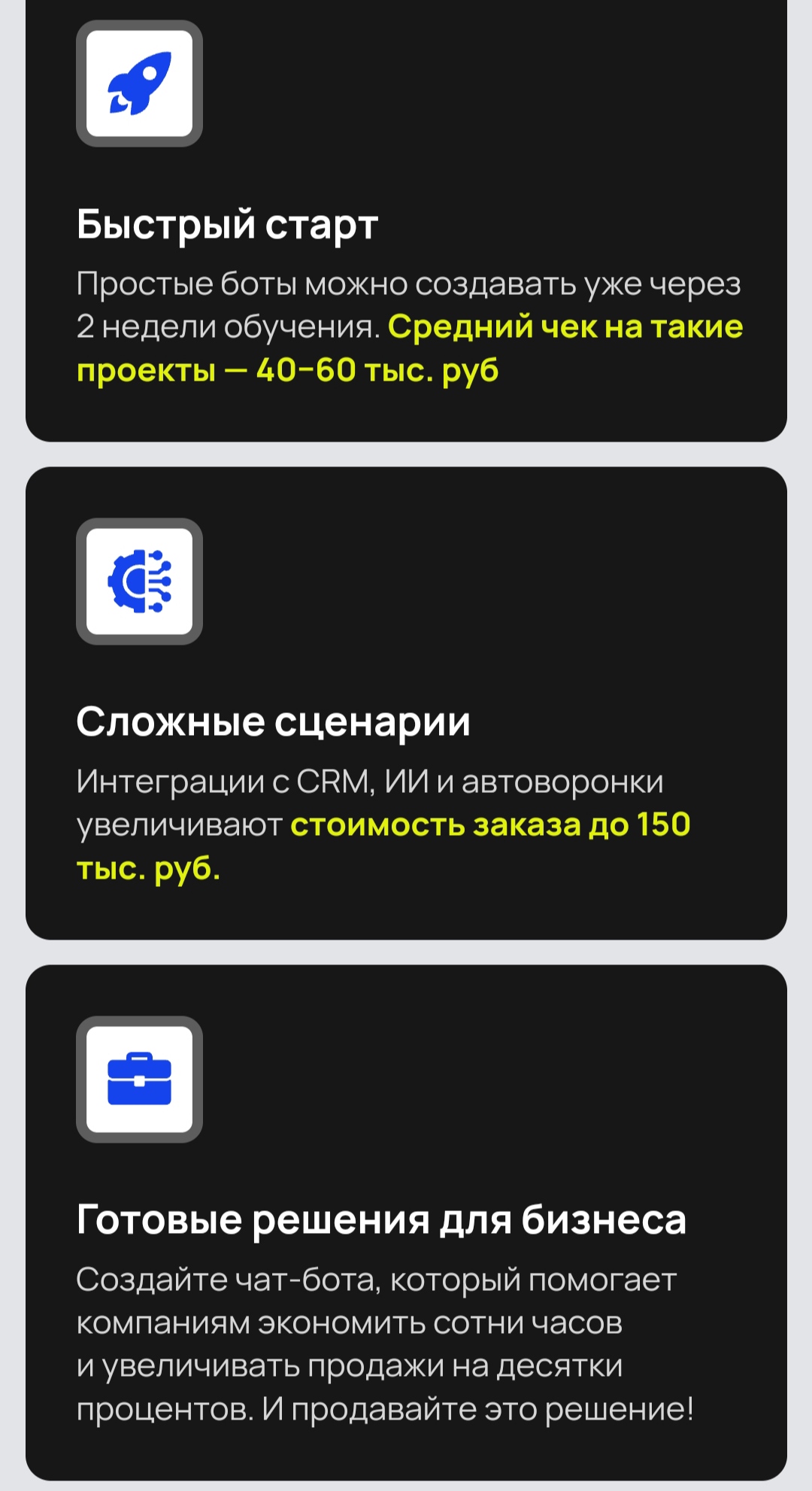 В то время как реальная цена на телеграм-ботов это где-то 2-3к, и даже на эту сумму к заказчику прибегает 15-20 голодных жадных исполнителей со словами "господин, я опытный 10+лвл кодораб, и готов осуществить любые ваши фантазии!"