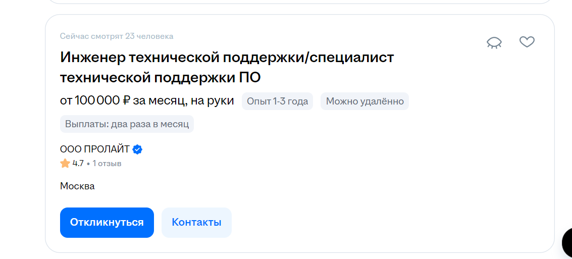 Но да, там поехавший кабан. Хочет техвуз, опыт , навыки, вкладывать не хочет. Хочет как в нулевых дешево бесплатно. В моей мухосрани один только съем жилья 40к-60к
