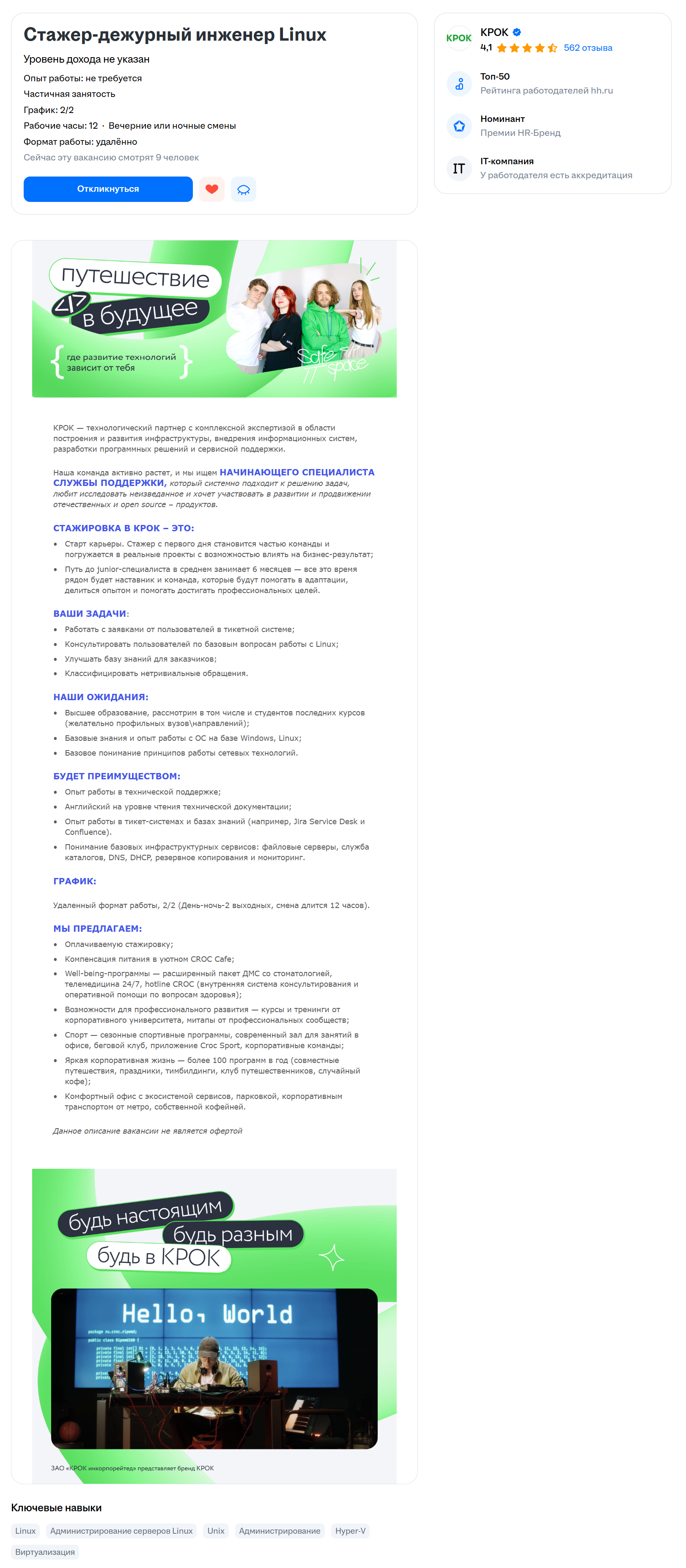 видел еще стул с Linux саппортом, но там тебя будут ебать за сети по учебнику (рассказать как устроен интернет не своими словами), за REST API, HTTP/S от начала до конца из чего состоит, какие методы, какие сообщения, сюда же postman, далее за python/bash нужно уметь хотя бы простые скрипты писать, за мониторинг (графаны, заббиксы, их метрики от нуля до капитана).