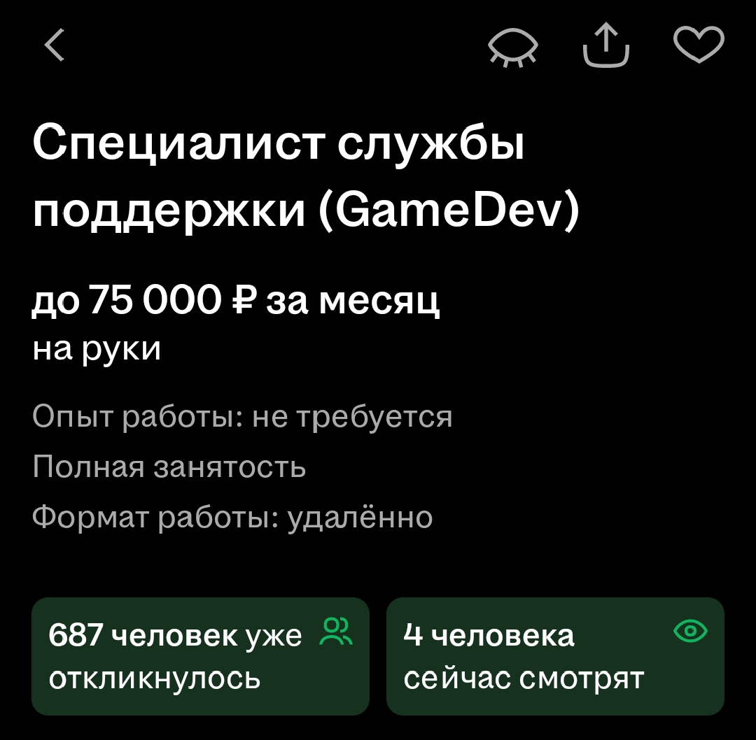 Это чё нахуй? Настолько все поубивались на СВО, что нужен вообще кто угодно, левый хуй с улицы? Настолько, что САМИ пишут в личку? Вакансия опубликована в апреле, до сих пор висит, просматривают 2 человека. Это потому что я живу рядом и у них там цех горит уже адским пламенем или че?