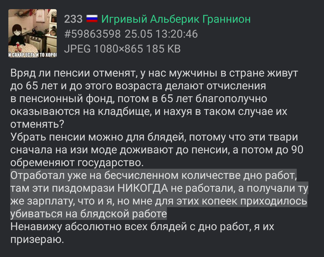 >>3116379 Эти 120к - наверняка с дикими переработками по 12 часов в день без выходных. Так что в пересчете на стандартные 160 часов там будет дай боже 50к. А это уже не очень, учитывая, что ты наверняка без передышки будешь ебашить. Понятно, привыкнешь быстро пока молодой. Но вот что с тобой будет к 50-60 годам, особенно если у тебя в этом плане генетика не очень - большой вопрос. В общем повышенная зп грузчика в таком случае - это чисто вознаграждение на лекарства и операции в будущем. Это если твои накопления за эти годы не сожрет инфляция/не отберут. >>3116338 А меня узнаешь? >>3116434 В гугле на ютубе забанили? процентник