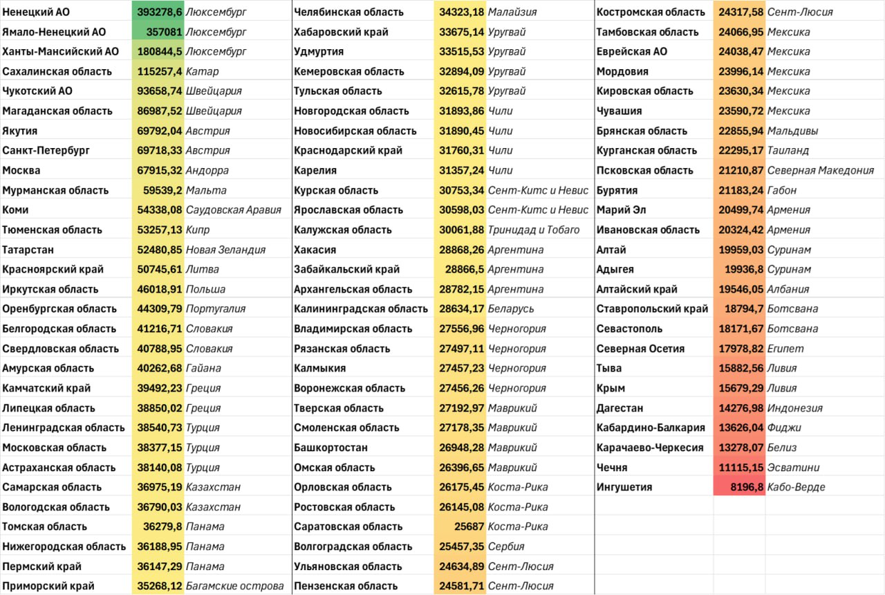 >>3091843 Эта мало что дает. Актуально количество вакансий и заработные платы. Северные округа и республики ВРП делают за счет полезных ископаемых, в них не так уж много работников занято. Остальные не сильно ощущают эффекты катарских или люксембургских доходов. А по твоей таблице получается Астрахань перспективнее Краснодара, Оренбург лучше Новосибирска, кто знает реалии на земле, понимает что это мягко говоря не так.