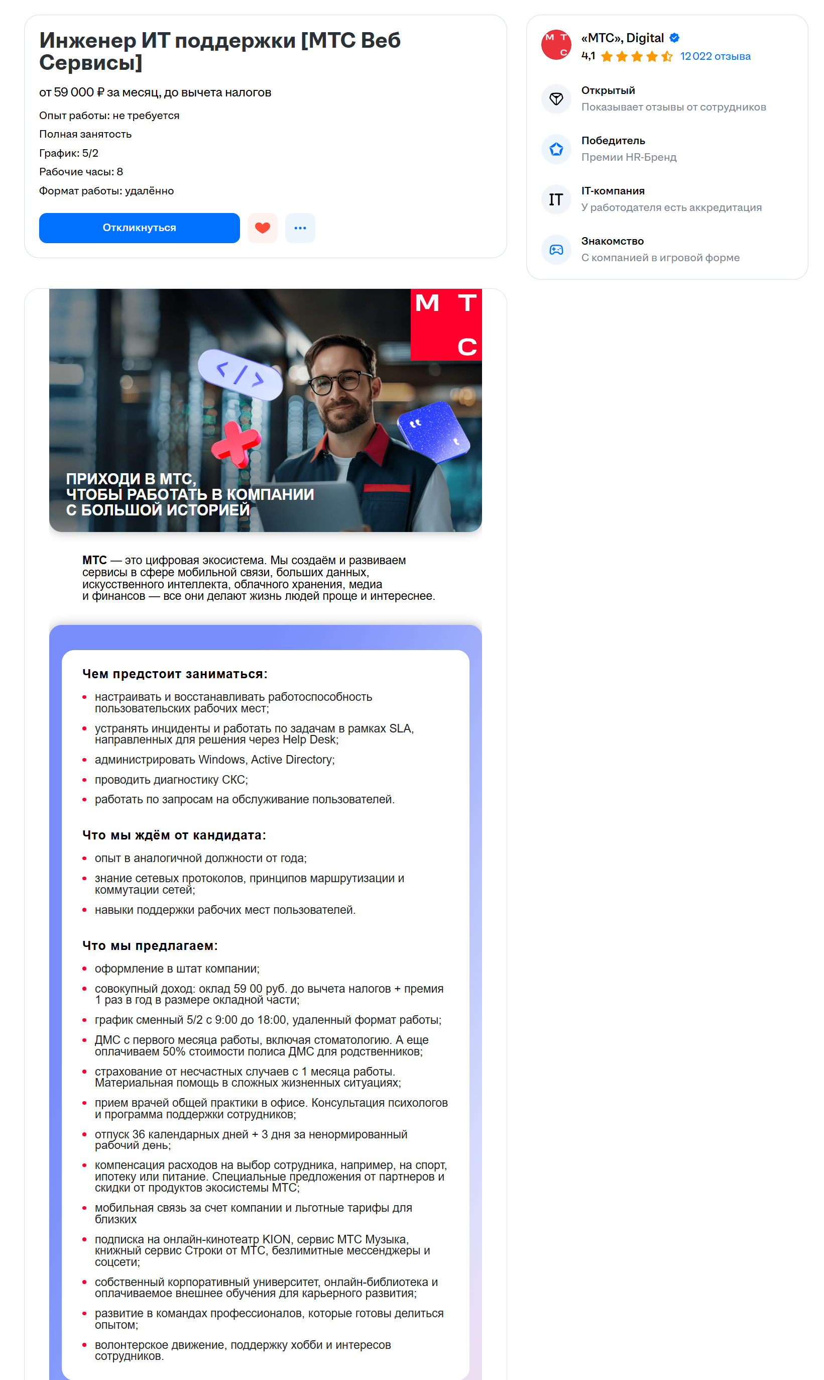 >>3134976 че там удаленно можно на скс диагностировать кроме л2 связности это скорее всего поддержка салонов мтс+работа через подрядчиков то есть иметь дело с кучей 20 летних девочек, для которых свитч вон та непонятная штука с проводами. смотри сам, для вката пойдёт, идти туда с опытом уже ну как то маловато платят, хотя смотря скок работы.
