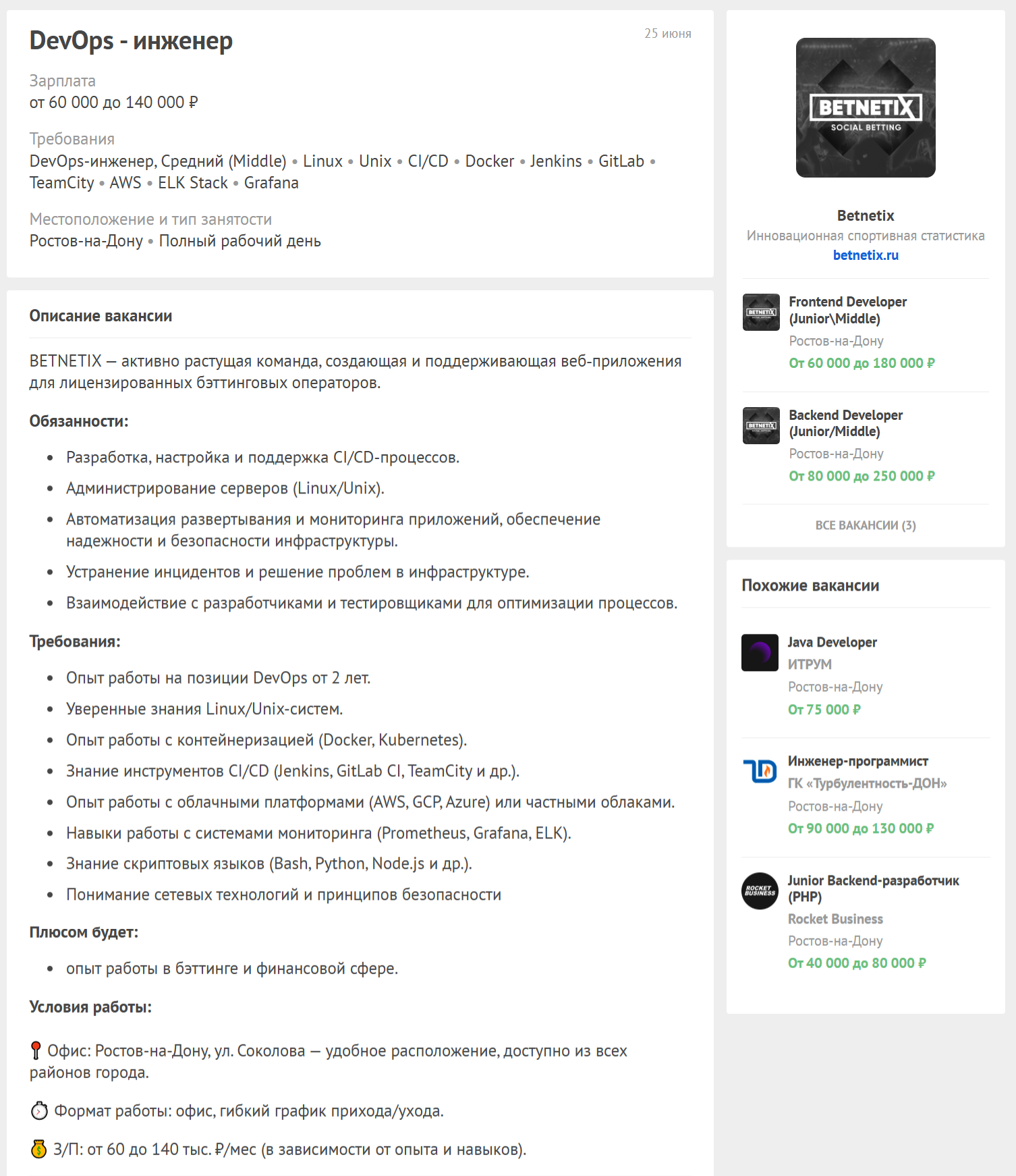 >>3133118 Лучше в техпод какой-нибудь свичнуться, там хотя бы 50+ можно поднимать, ну и месяца три внутреннюю кухню будешь изучать прежде чем ебка начнётся. По набору скиллов +- тоже самое выйдет то есть малопригодное для девопса