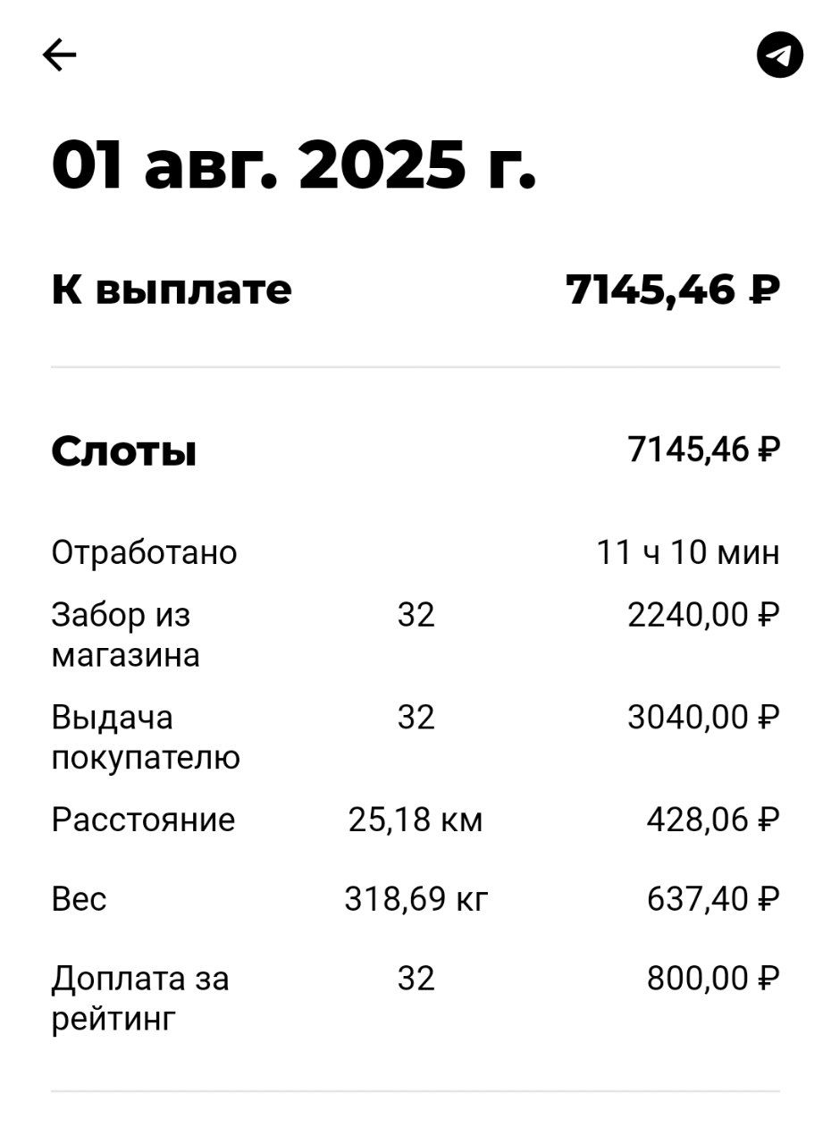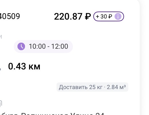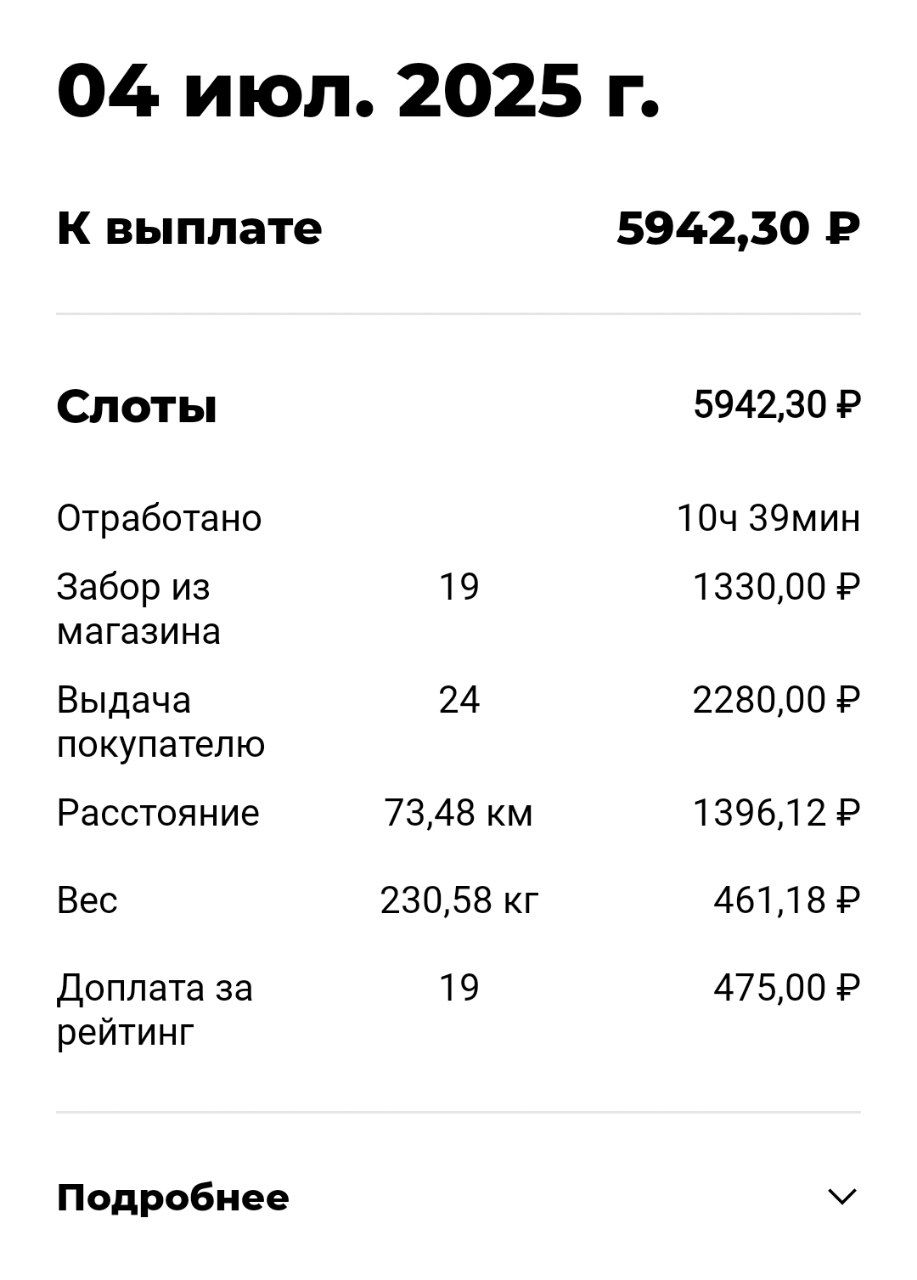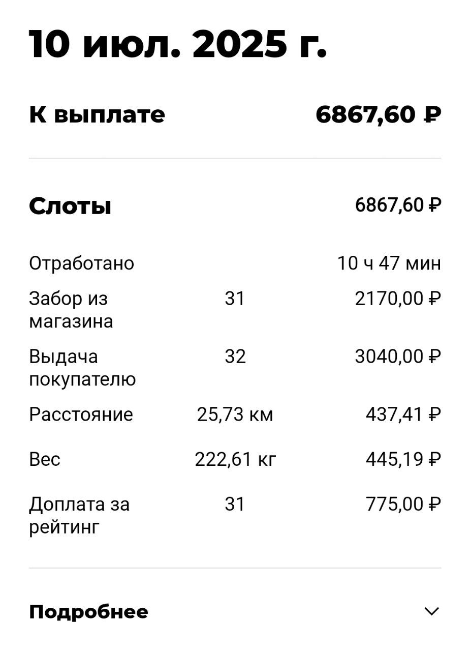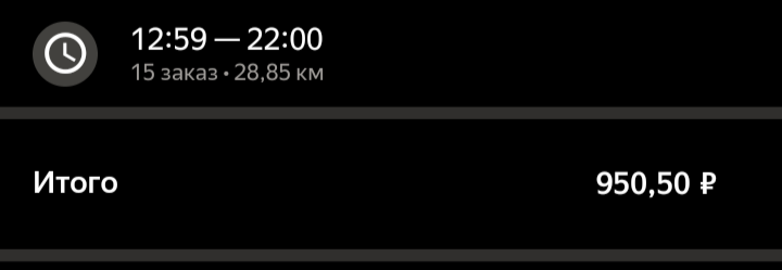 >>3137778 Всё те же 200р в час, +/-. После последнего заказа слота посидел помониторил заказ по пути домой, вообще это конечно тупо что нельзя до окончания слота это делать. Заодно чуть экспанулся в ручном наборе. В общем нашёл один, приехал на первую точку, а там выяснилось что заказ надо было забрать до 15:30, а в инфе заказа этого нет. Минут 40 минусанул за компенсацию в сотку, ну хоть не 0. Хотел уже в холостую ехать домой, как на остановке в 3 минутах появился заказ почти до дома, повезло.