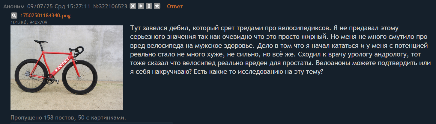>>3138601 Самокато дебилов, ровно как и электро пидоров, действительности надо забанить по айпи, но честных работяг на механических велосипедах зачем трогать?