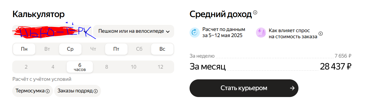 Я вообще в мухосрани терплю за 150-200р/час на велосипеде и это хорошо что заказы есть.