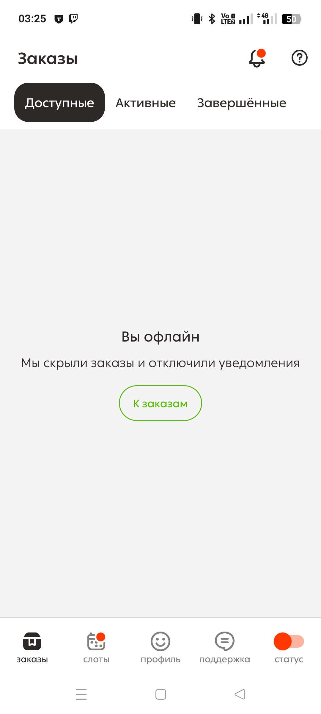 Служба поддержки мне звонит спрашивает когда смогу доставить еду, я отвечаю что мне тут попался второй заказ и я в очереди жду в пункте приёма доставки, она говорит хорошо