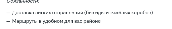 >>3136907 Да понятно уже, сдавать данные и регаться в каком-то мутном реестре - не, курьерка в прошлом для меня. На "обычную" штатную курьерку на развоз макулатуры\мелкого хлама за 45к/мес 5/2 уже почти год не могу устроиться через хедхантер, хотя ещё несколько лет назад было вопросом одного дня буквально, они сами звонили и предлагали такие работы.