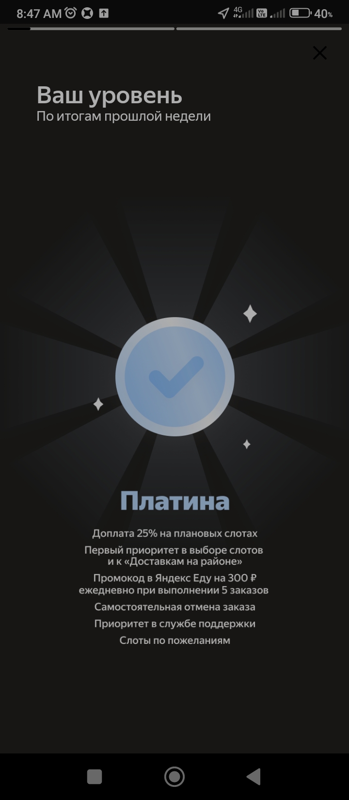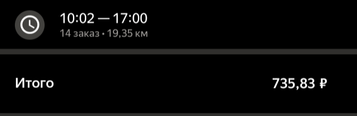 Вкатился. Какая же Я.Еда хуета, пиздец просто. За 9 часов 3300 руб. Скорее бы добить этот бонус и направить все свои силы в ламповый Х5 на авто аккаунте