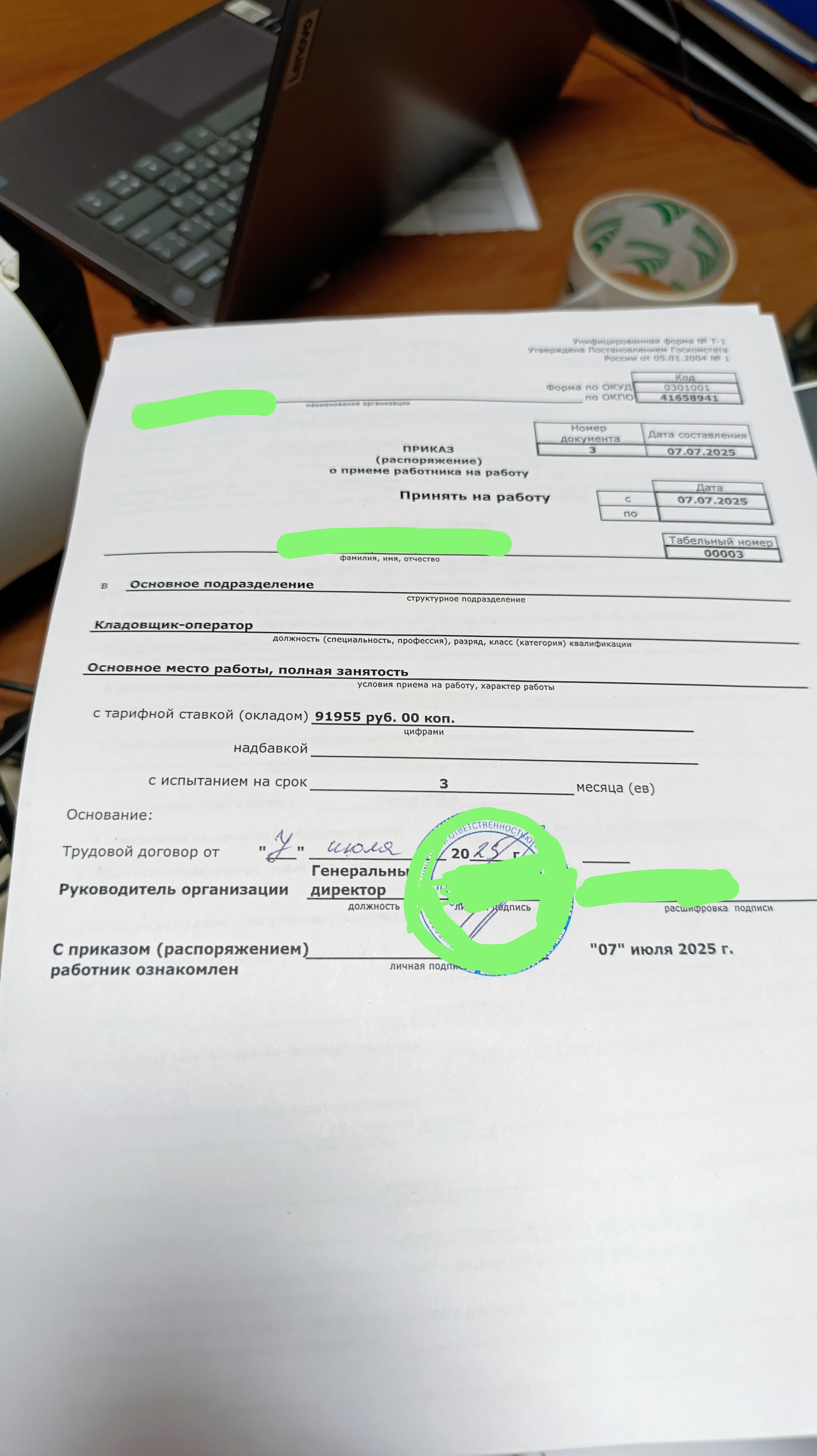 Табельный номер 3 немного настораживает (кроме тебя там директор и уборщица)? Но добра тебе, анончик