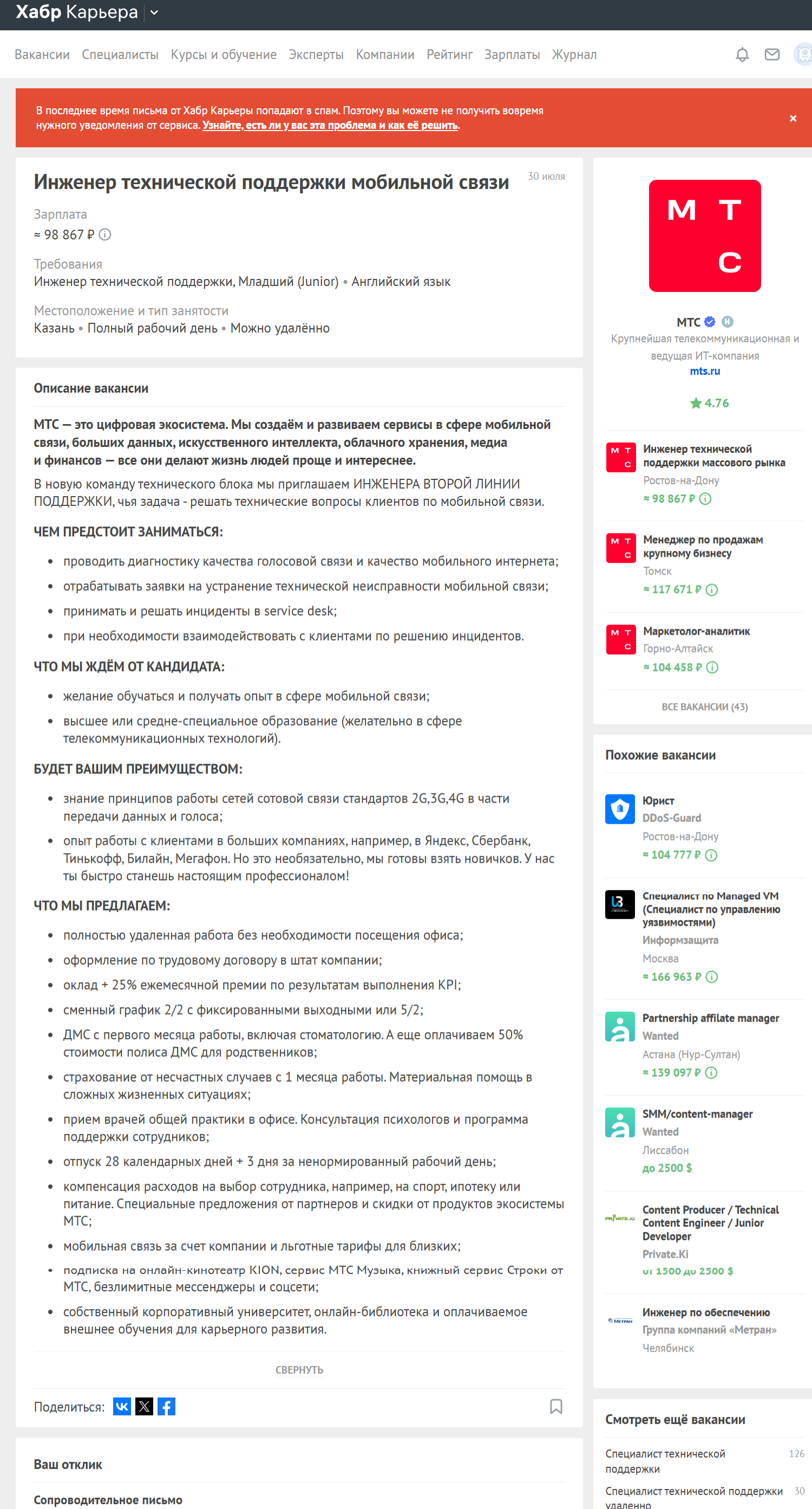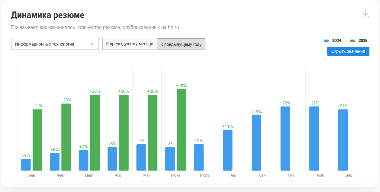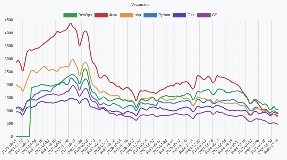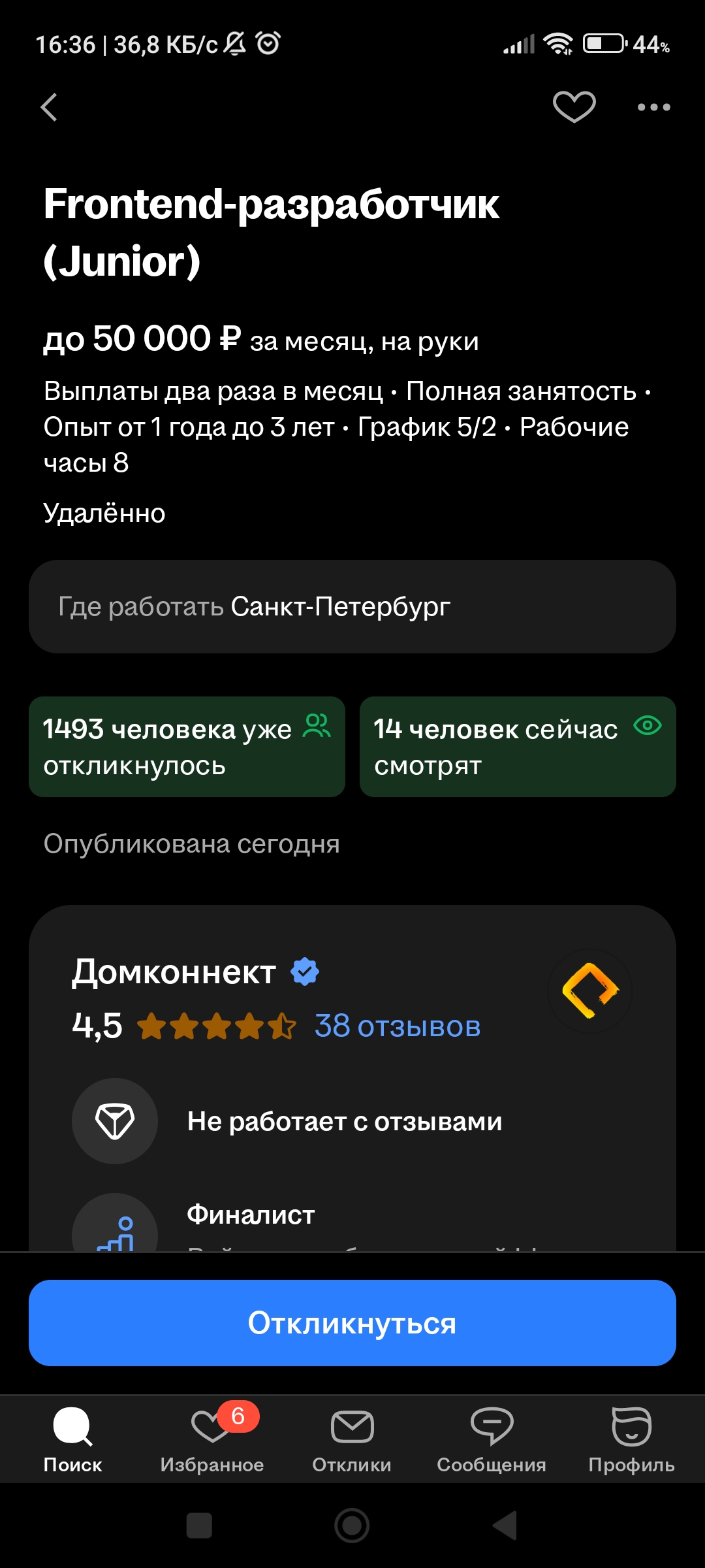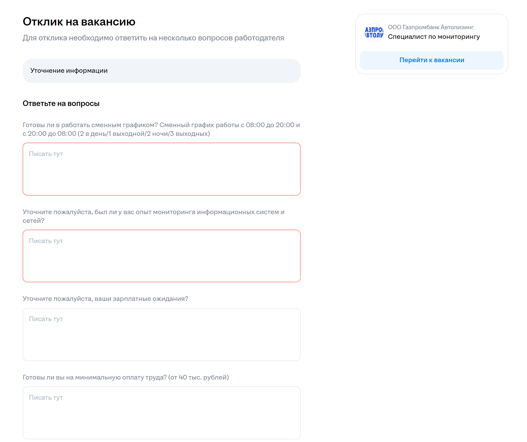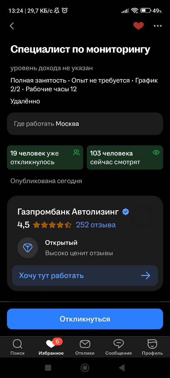 В мониторинге только. Ну и там разумеется конкуренция есть, в среднем 150-200 откликов. Если зп низкая (35-45к), то до 100 откликов, иногда даже поменьше. Если зп приемлемая (от 50к), то 150-200 откликов.