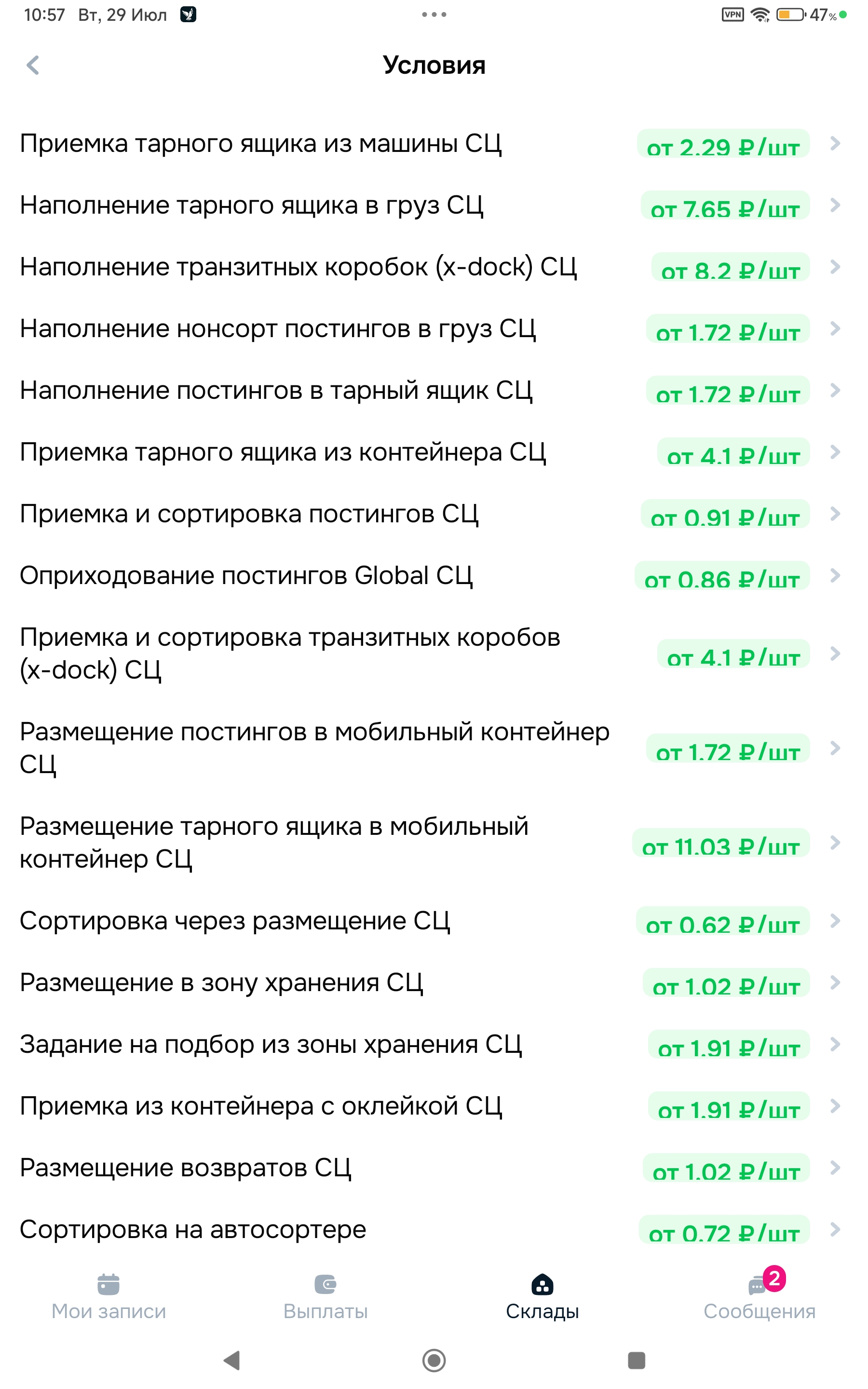 Q)А по выплатам что? А)В отличии от Озона, заработанная сумма в приложении показывается уже за вычетом налога. Но есть нюанс: в приложении есть две плашки Тарификатор и Баланс. После смены деньги идут в Тарификатор и лежат там 2 дня. В течении этих 2 дней с Тарификатора могут вычитать штрафы. На 3 день все что осталось от ваших денег за вычетом штрафов переходит в плашку Баланс. Баланс уже является неприкосновенным и из него ничего не вычитают. Дальше можете либо копить деньги на Балансе, либо вывести их на карту почти любого банка там большой список банков. Можно выводить деньги по сбп.