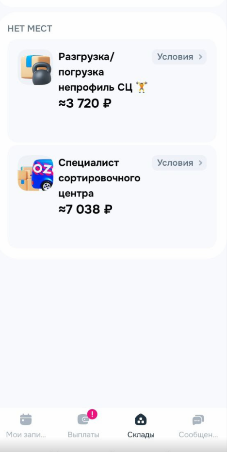 Q) Я зарегистрировался, а смен на складе нет, причем везде! A) Это норма, проверяй приложуху по несколько раз в день. Это потому что другие могут занимать смены сильно заранее, а новички нет.